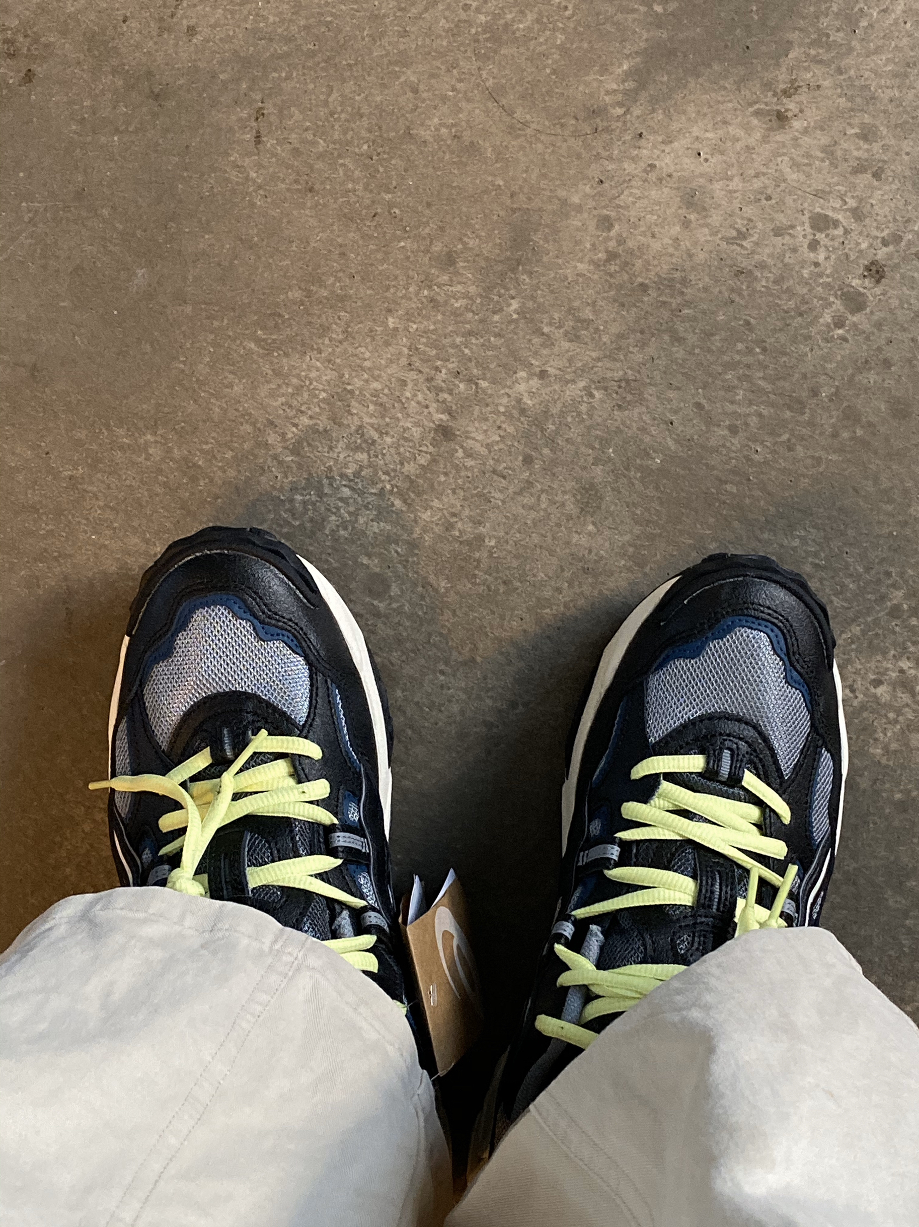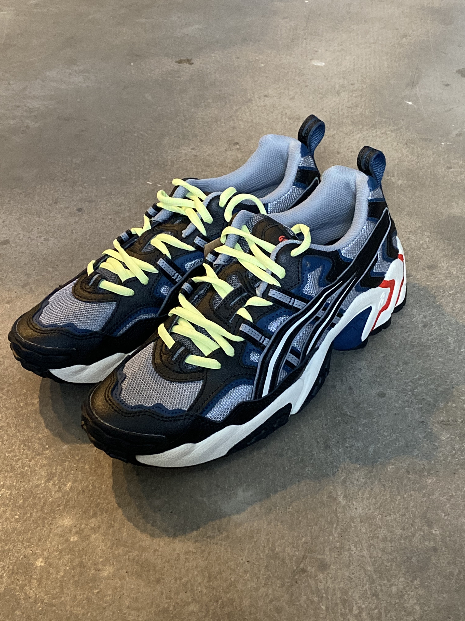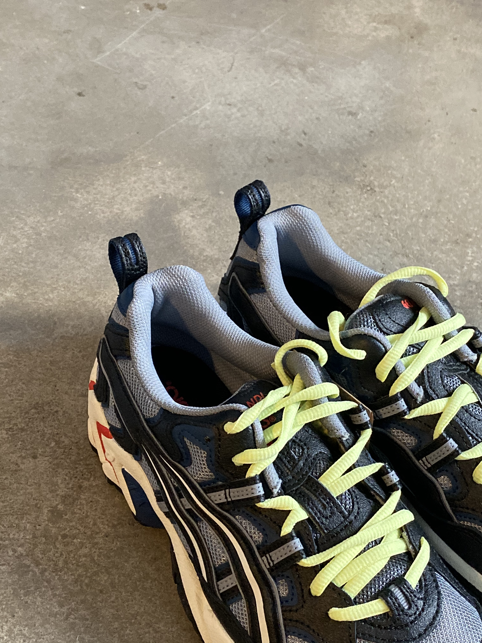 这款亚瑟士叫GEL-NANDI,其实颜色还是蛮好看的,很特别的一种灰色,色彩搭配上也比较丰富,就是我感觉绿色鞋带如果能换掉应该很好看。 之所以说像被穿皱的鞋,可以看到鞋面旁边的线条处理,歪歪扭扭的,凹凸不平,有一种不完整感,还是丑帅丑帅的,估计是上面新加的缝线造成的。还是好看的鞋,搭配需要一些水平。 #亚瑟士 Asics[品牌]#