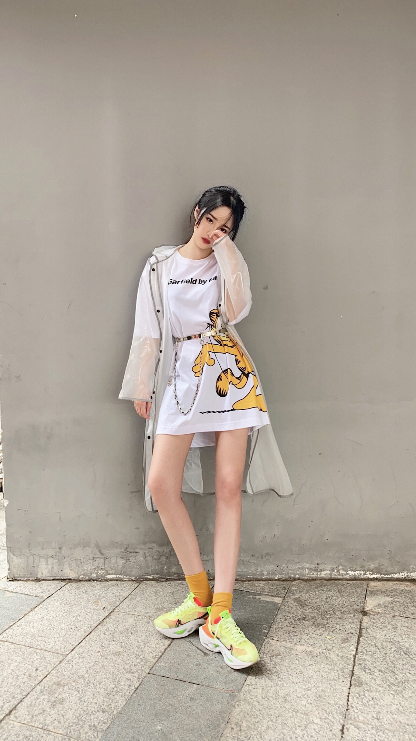 白色简约加菲猫T恤👕,加上透明外套🧥的点缀,配上一双潮流运动鞋👟。 · 今日穿搭✔️ 上衣👕/fun官方旗舰店 鞋子👟/ nike zoomx vista · 整体风格:休闲风#今天穿这样# #休闲风# #潮流# #简约# #帅气#