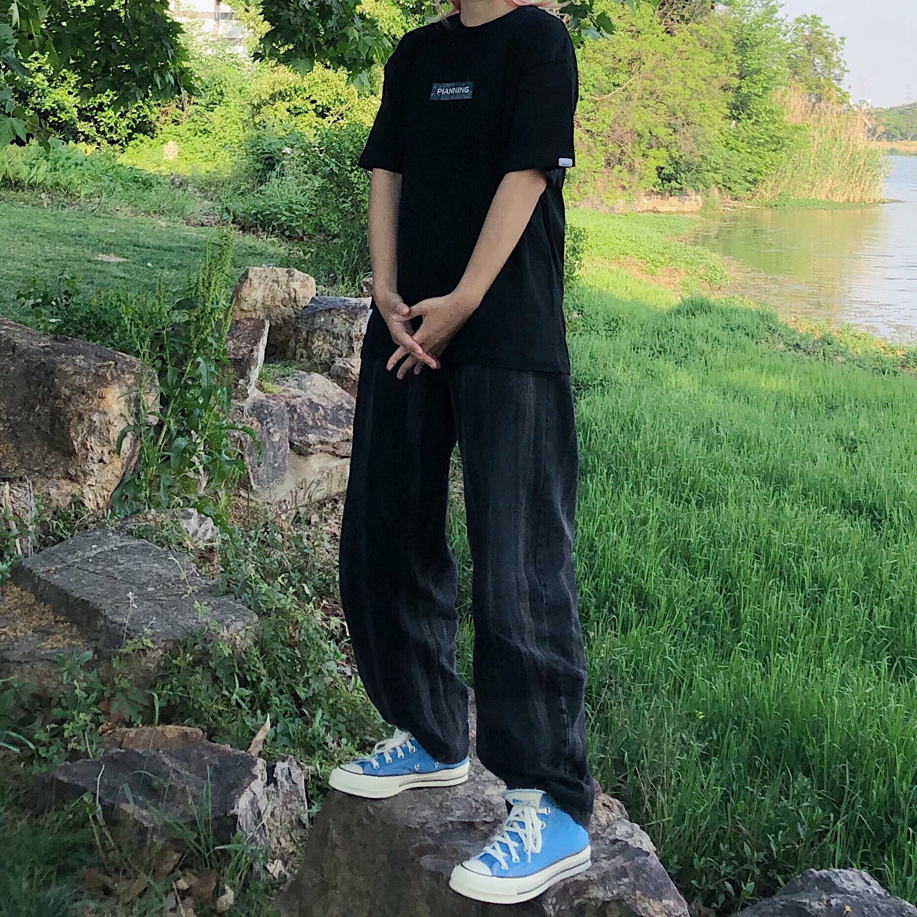 上衣:pianning 裤子:parasona 鞋子:converse 70s 整体搭配以黑色为主 短袖搭配黑色牛仔裤是非常简单的一个搭配方法 最后可以选择一双百搭的板鞋搭配 出街出游都可以~