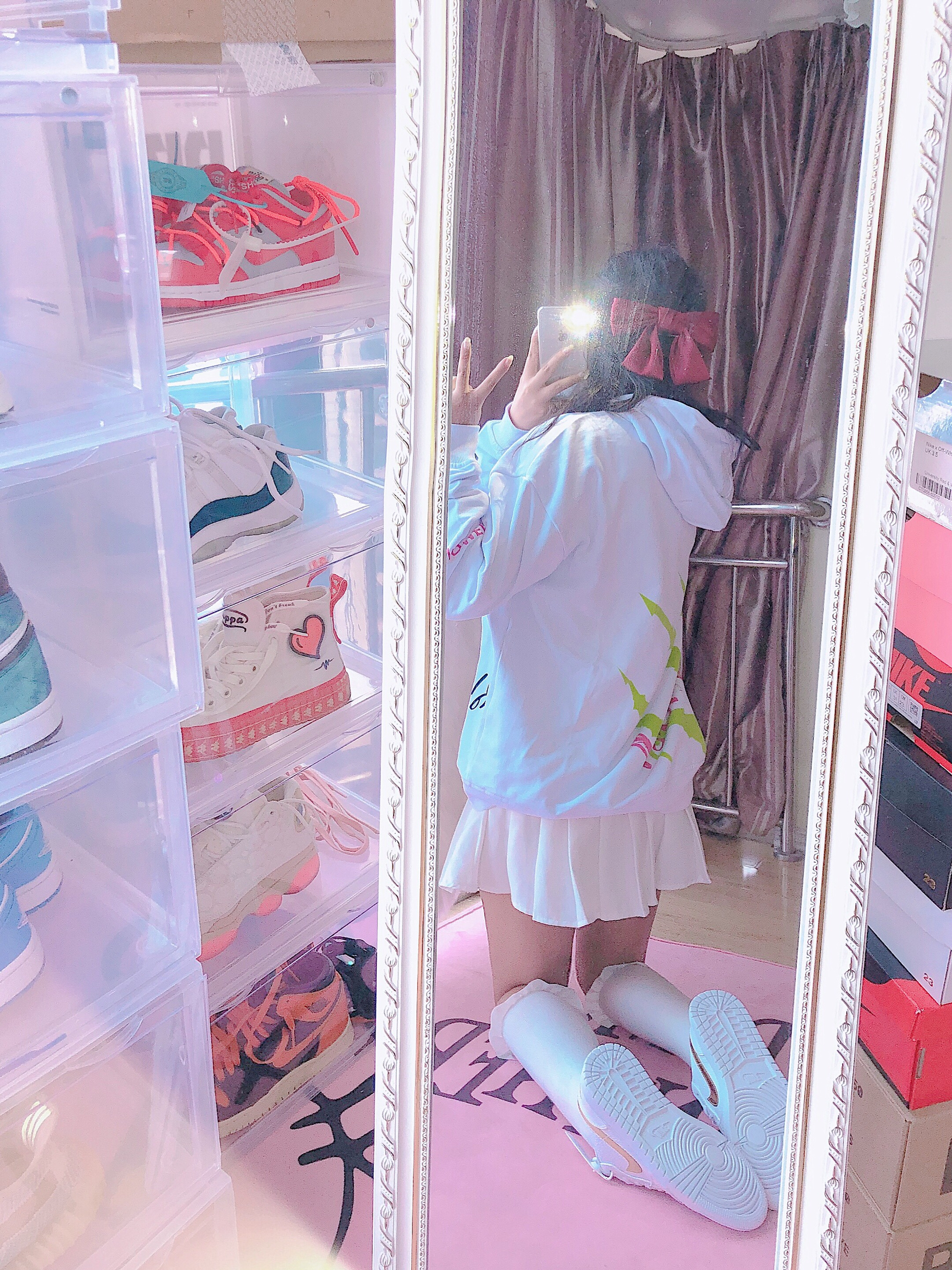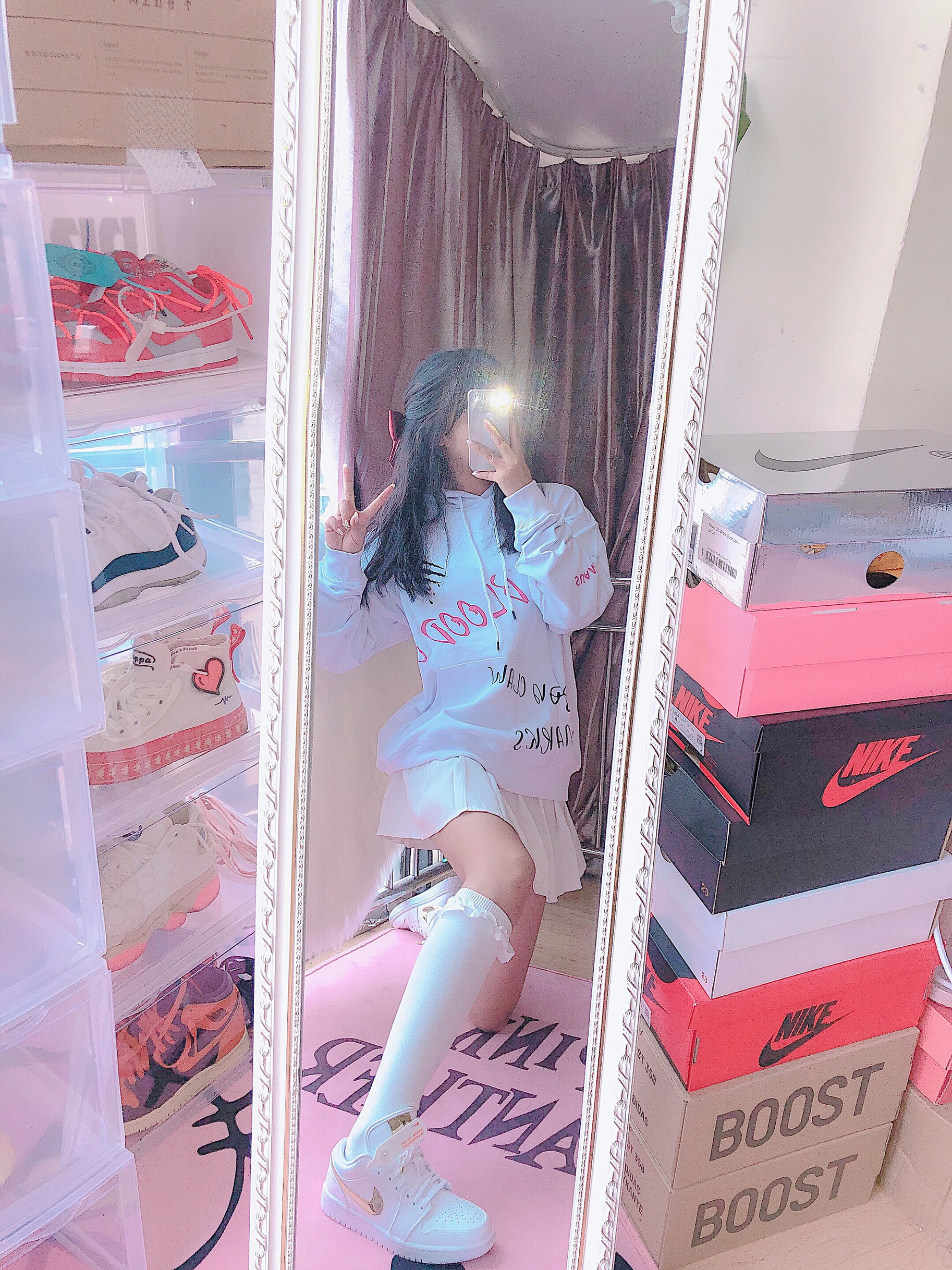 👔:suamoment 👗:白色百褶裙 👟:Aj low白金 今日甜美秋季约会穿搭💖白色的爪痕卫衣~穿着面料超级舒服🔆男女同款✨印花清新而且配色也很好看~绿色的字母很小清新🍃再搭配白色百褶裙可爱少女感十足💖袜子今天穿的是一款花边袜🧦和aj配色相呼应白色比较简约百搭🌟