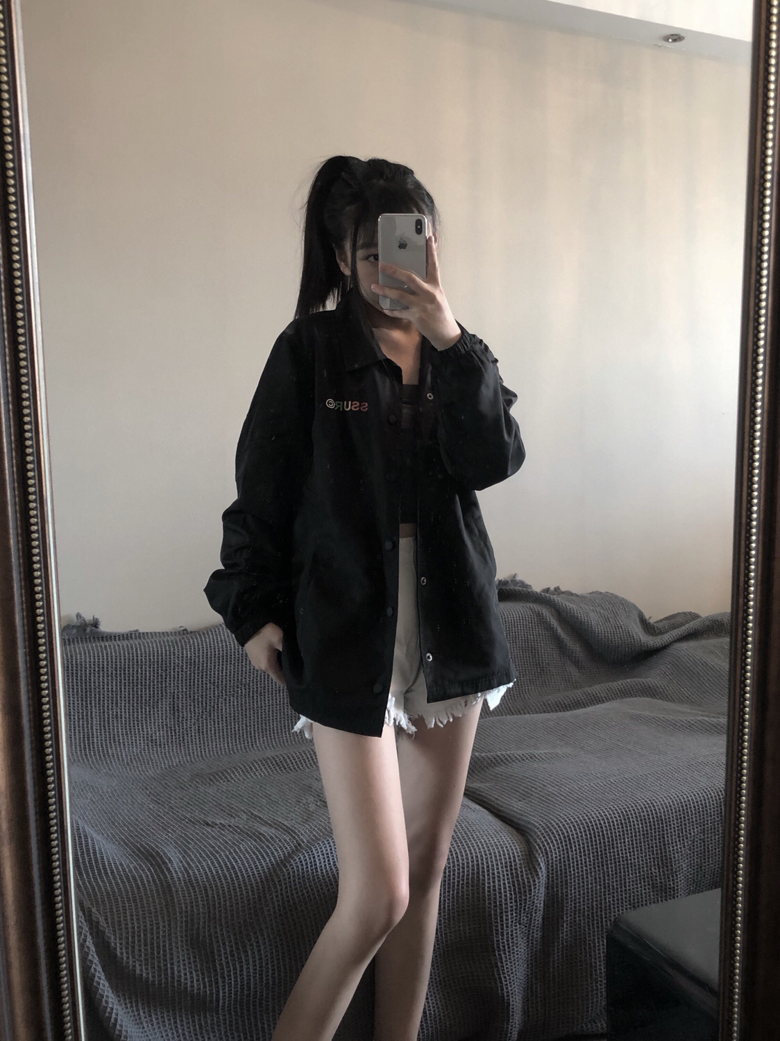 外套:SSUR PLUS 内搭:前几天动态有发过~ 👖:牛仔短裤 这个彩虹教练夹克有点恶搞的意思 我感觉我穿S正正好 其实还可以大一码!教练夹克真的百搭 男女皆可 还入了一件其他牌子的 大家可以比较一下入
