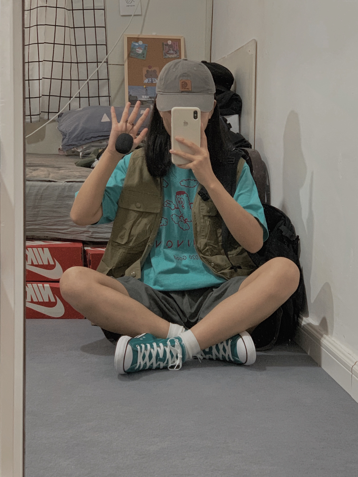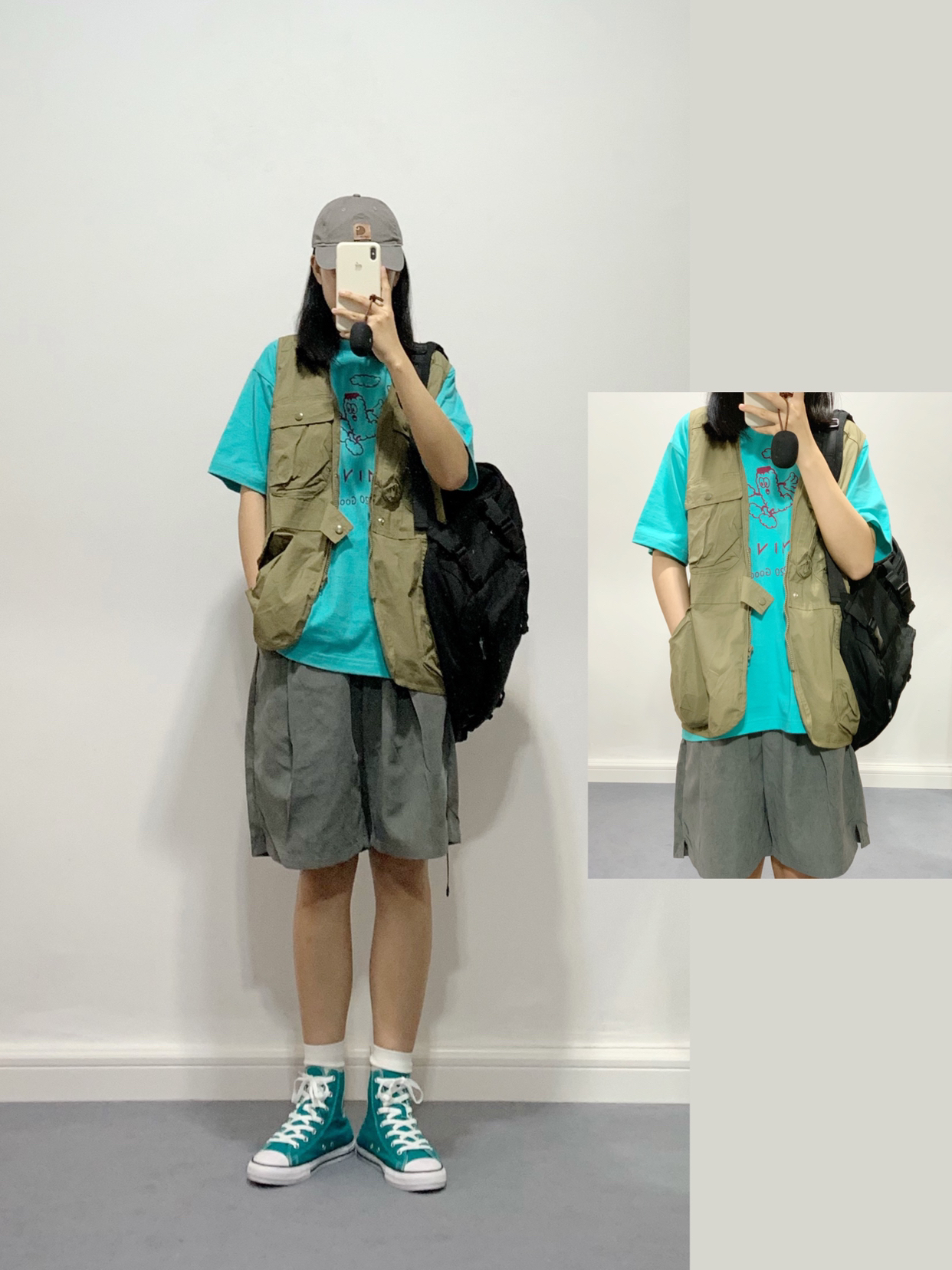 多口袋设计的工装马甲,叠穿短袖长袖都可以 复古的军绿色咔叽风🈵️🈵️,夏天秋天都能穿 下身搭配裤子就偏帅气,搭裙子就是乖乖女~
