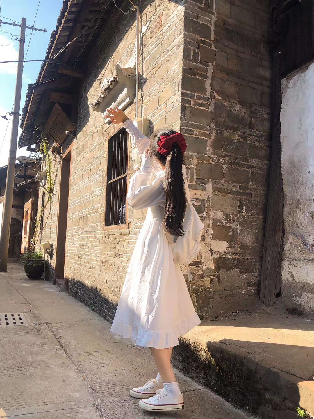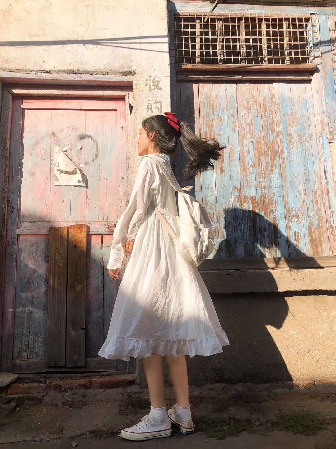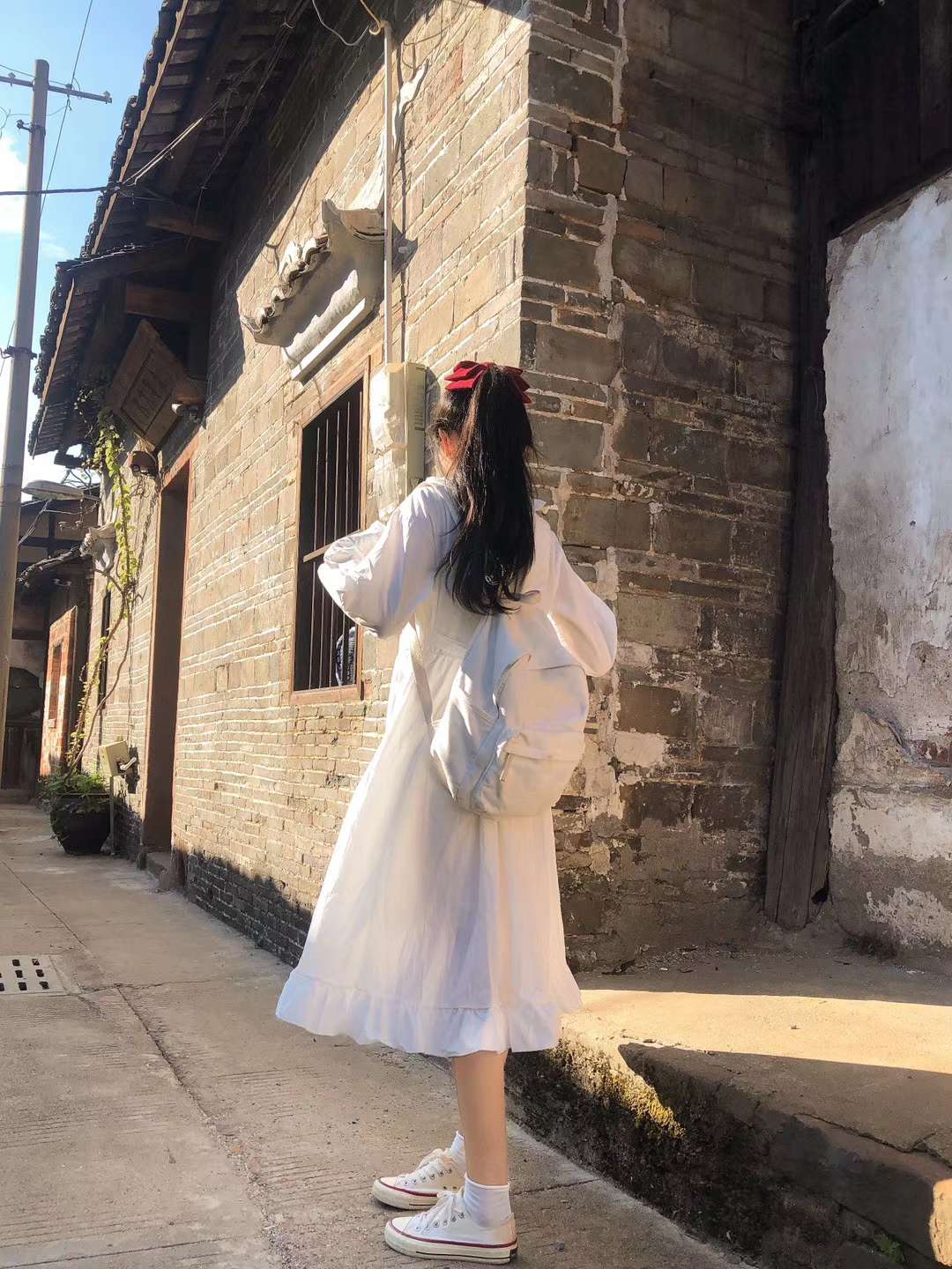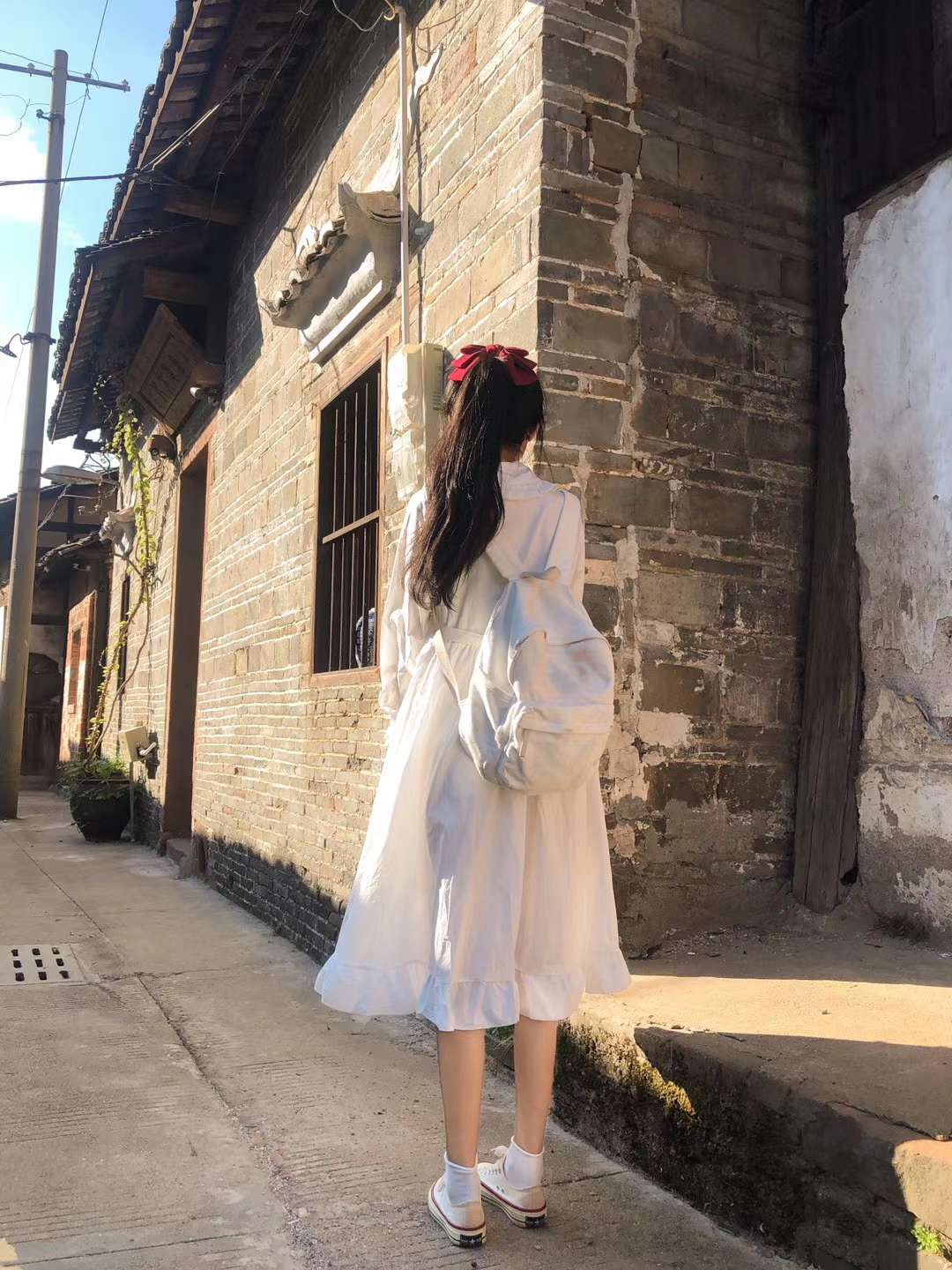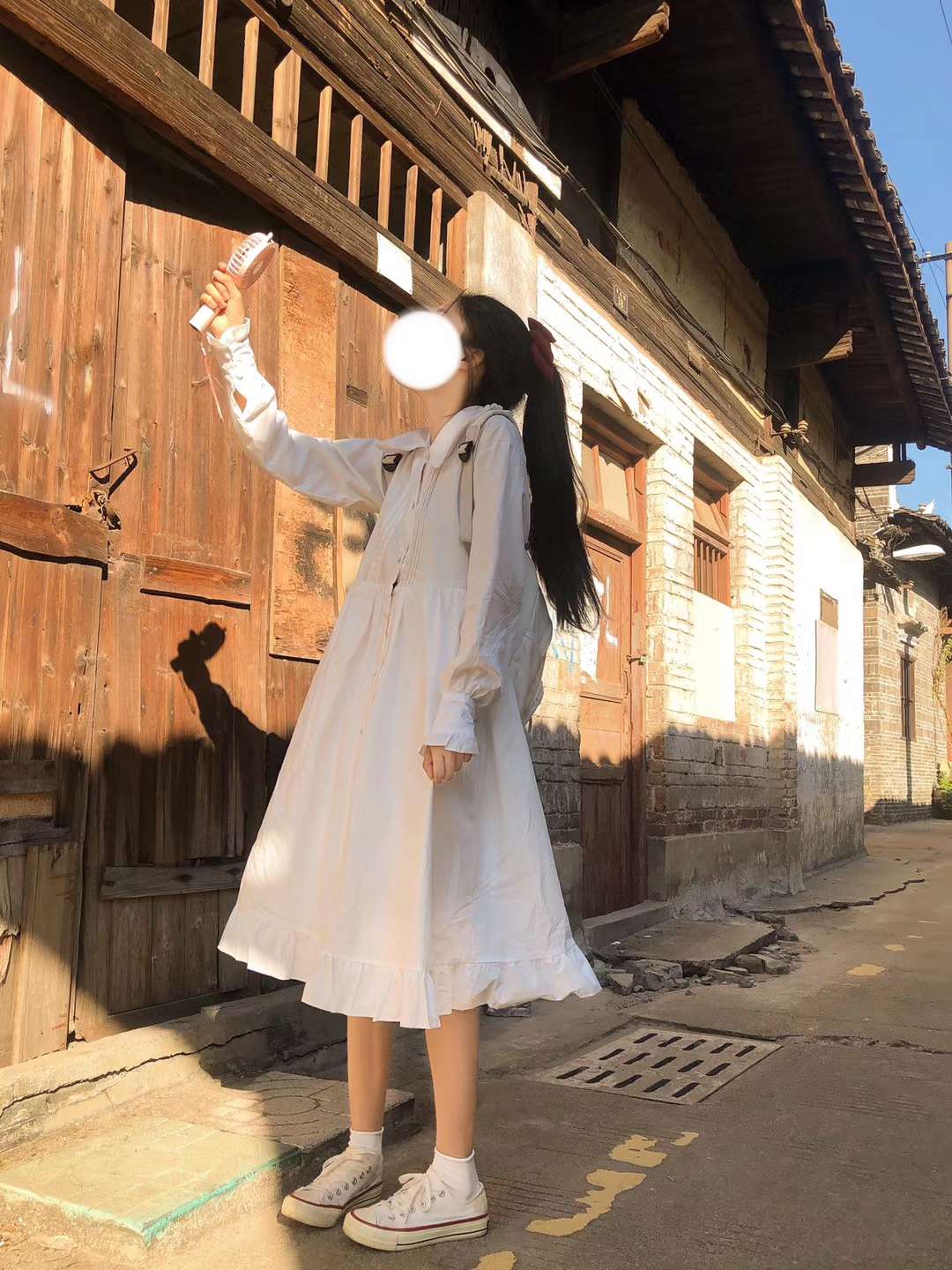 今日穿搭是简单又不失设计的白裙子 总体看去裙子是很简洁亮眼的 但是同时还有很多小设计 领子是polo衫设计的领子 领子旁边有细微的一些花边 袖子是长袖 夏天可以防晒 同时春秋也可以穿 袖口有一点紧边花纹设计 整体看来 上半身是有点衬衫设计,带扣子 下半身的裙摆也有花边设计 所以整体看来,再结合各种细节小设计 这套裙子就是很简约的淑女裙没错了~