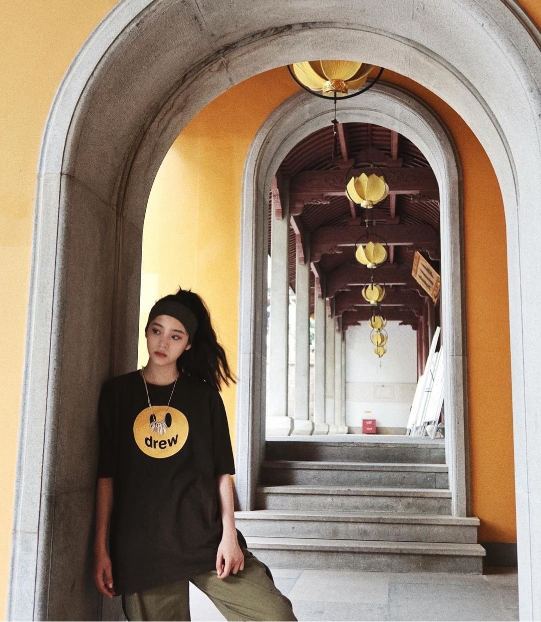 娜比今年四月份的私服一则,身穿贾斯汀比伯创建的品牌Drew House笑脸短袖T恤,头绑发带,变身潮酷女孩一枚,好看!!! 商品名称:【贾斯汀比伯同款】Drew House 笑脸短袖圆领T恤 黑