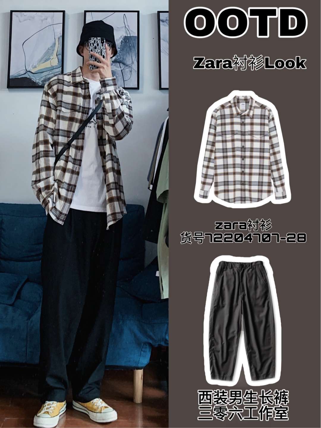 👔:Zara打折款 货号已标注 价~两位数 #ZARA[品牌]# 这款格子衬衫面料非常特别,不像是纯棉,有点发泡材料的感觉,但是穿起来非常舒服的,空调房当外搭完全没问题,浅棕色撞白色也很好看。 👖:垂感男士西裤 出处已标注 这款西裤我最近经常穿,垂感非常好,聚酯纤维的料子穿起来也不会热,透气性满分。黑色的西裤真的百搭,不想露腿的男生一定要安排起来,搭配短袖或者衬衫都会有不错的效果。 以上就是今天的...