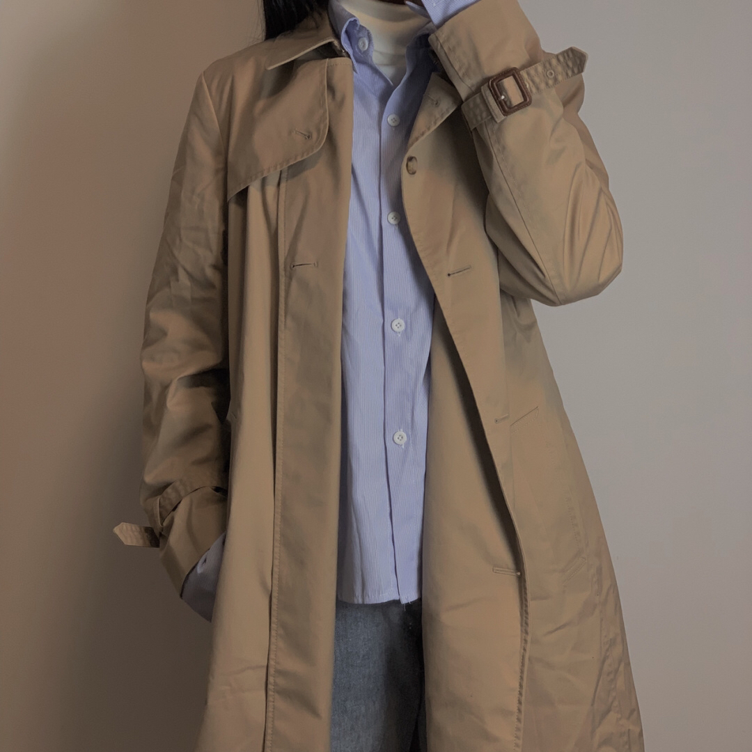 5️⃣白色高领打底(优衣库)➕条纹衬衫➕风衣外套 寒冷的秋冬怎么能少的了风衣🧥