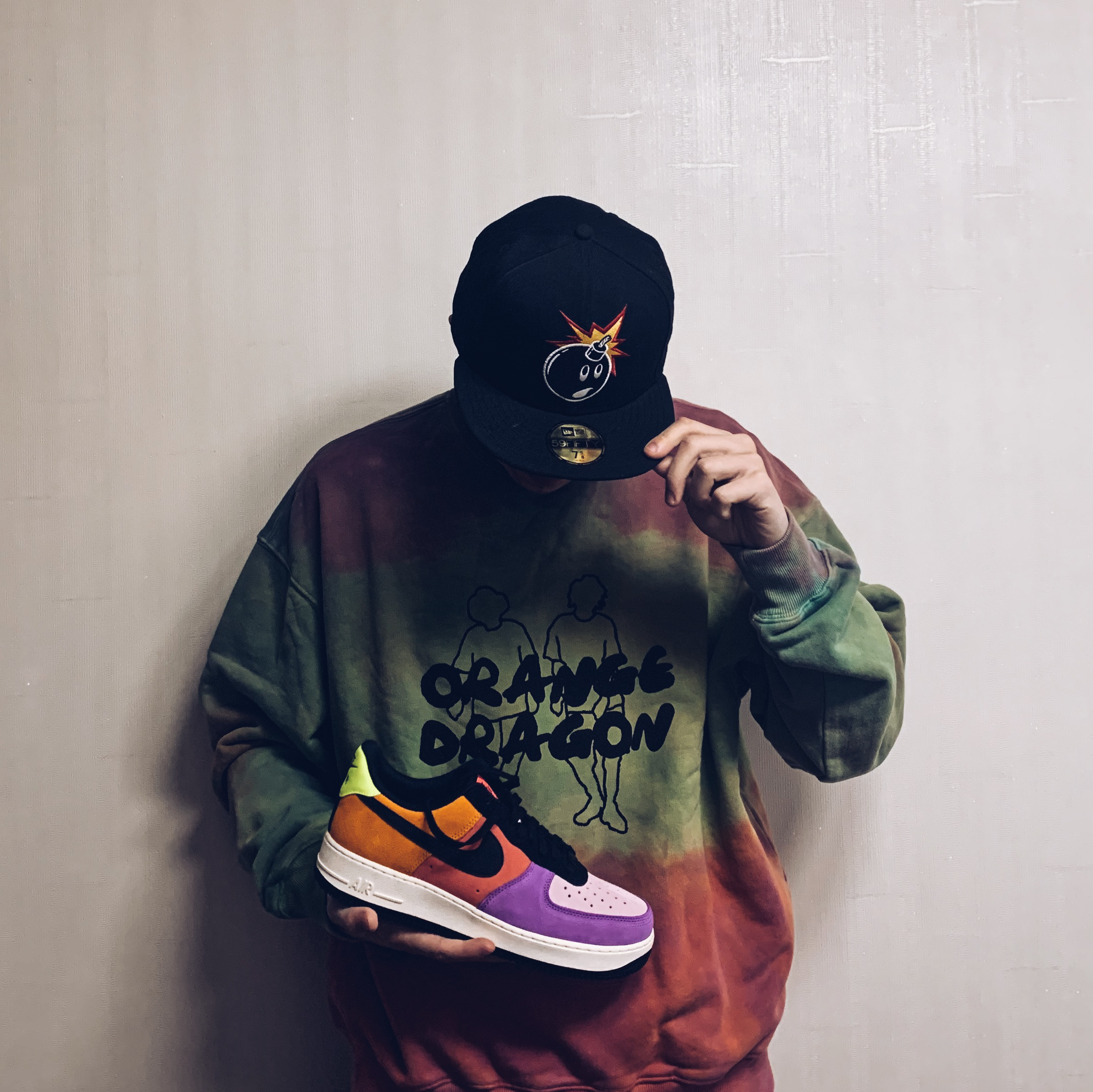帽子 Supreme x New Era 上衣 ORENJI DORAGON 打底 STA / 裤子 Calvin Kelin 鞋 Nike Air Force 1 色彩靓丽,我来驾驭.