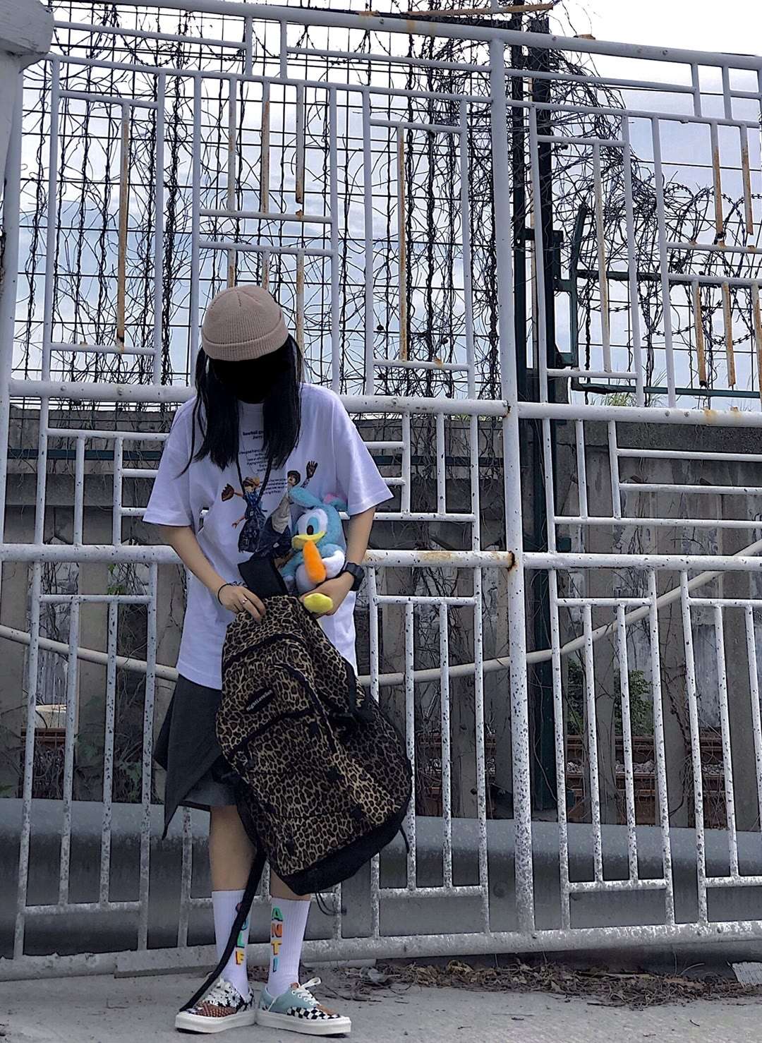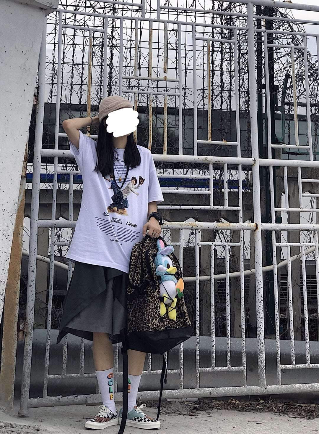 休闲简约工装裙 白T恤