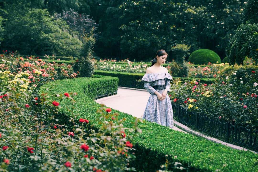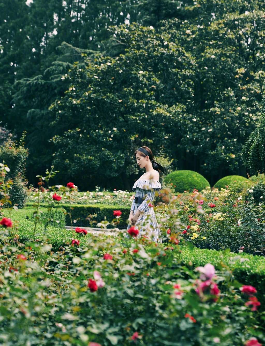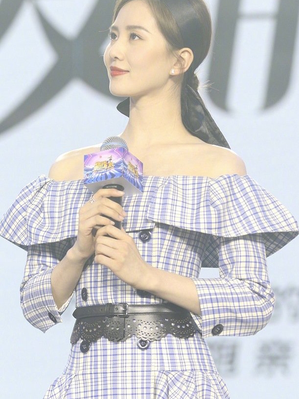 明星日常穿搭 | 明星私服 | 刘诗诗露肩蓝色格纹连衣裙 诗诗的天鹅颈太美了
