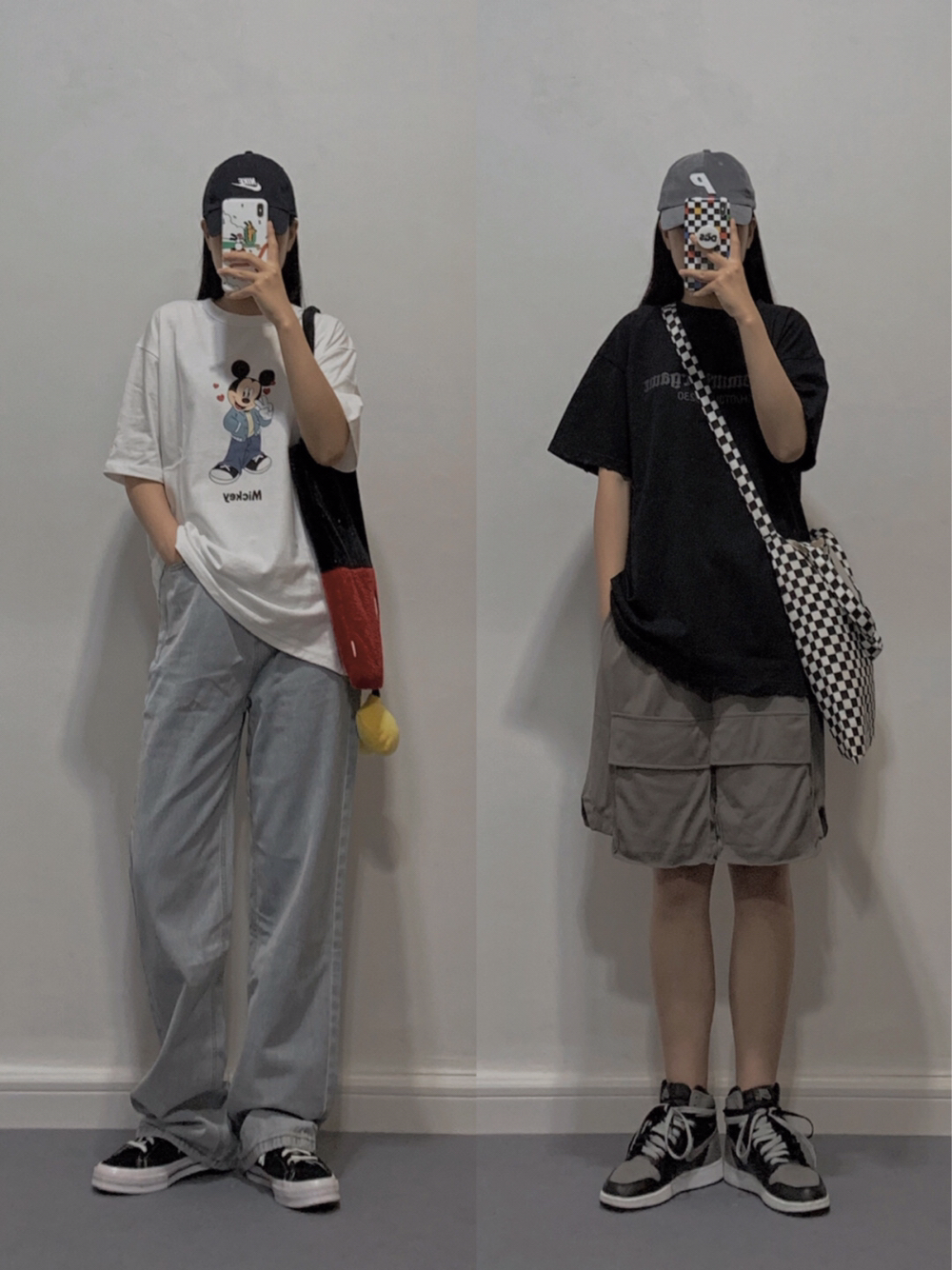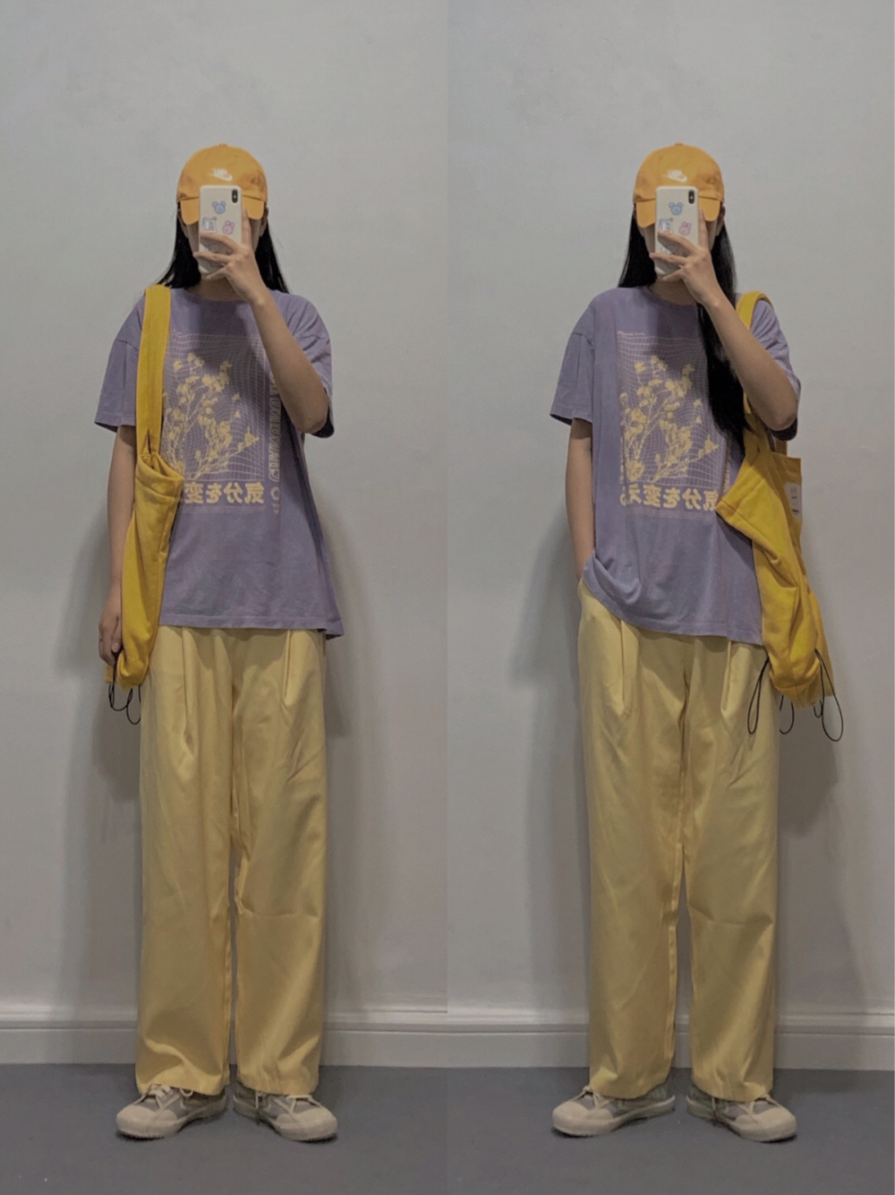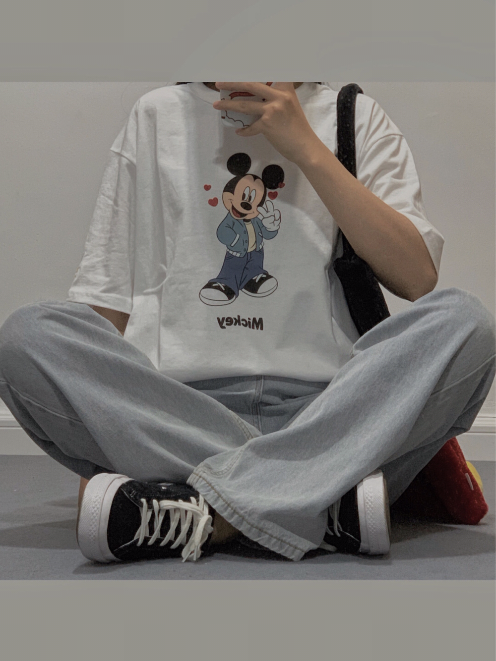 大家晚上🌃好呀,欢迎来到啾啾的频道📺 身高:164 体重105 腰围:68cm 臀围:91cm 肩宽:34cm 大腿围:53cm 小腿围:33cm look1️⃣ 🐭白色短袖:MAIN BOOTH 可爱的米老鼠T恤,想要不爱都不行 白t简单又💯搭,无论裤子裙子都可以 👖牛仔裤:BLACKY 浅蓝色牛仔长裤,高腰设计显腿长无di 不仅版型显瘦而且面料还舒舒服服滴 look2️⃣ 🔮紫色短...