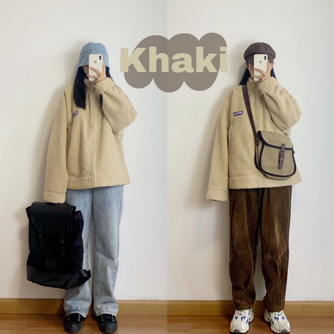 卡其色羊羔毛保暖外套(又及)➕棕色灯芯绒刺绣休闲长裤(BETWEENAND)