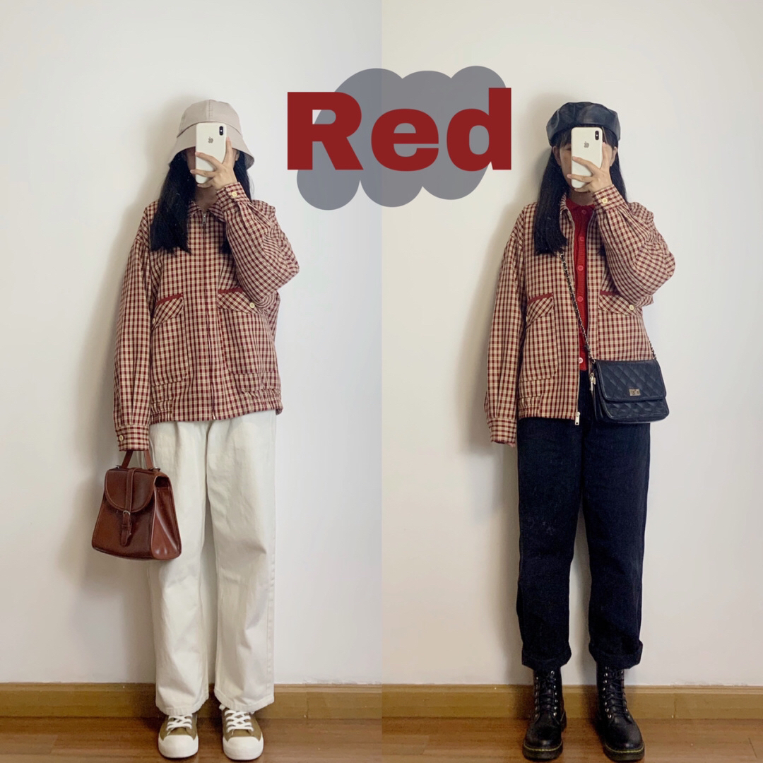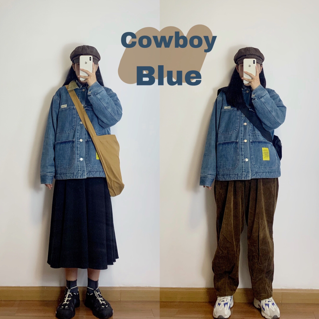 日系红米格子夹克棒球衫(SUNNYDAND)➕白色牛仔裤(同P2)/黑色工装裤(界派男装) 图7️⃣ 复古牛仔加绒夹克外套(SAMESAME)➕黑色半身裙/灯芯绒裤子(同P4)