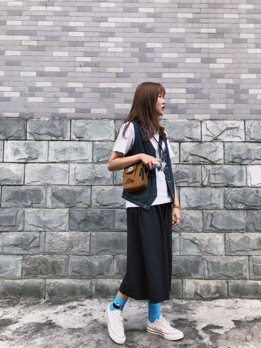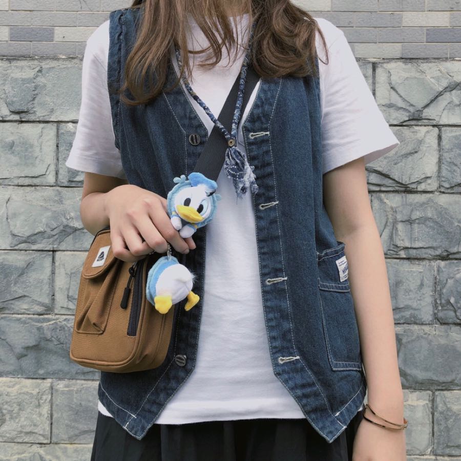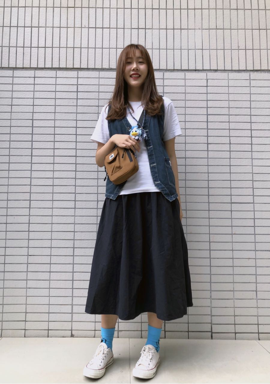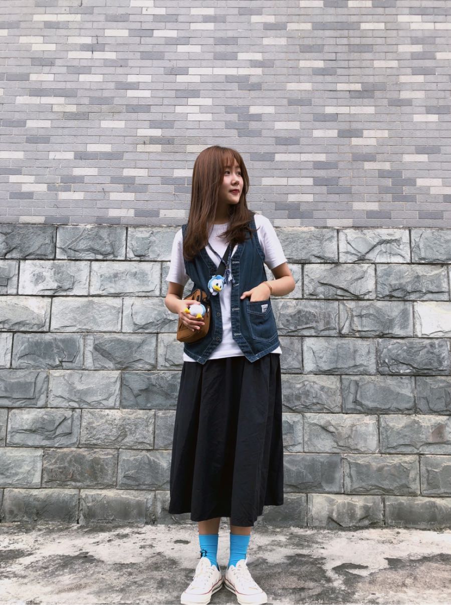 长长的文案来了 库存/ 内搭:UT x Snoopy 马甲:旁白 NARRATOR 裙:Punkhoo 配饰:Dizon ACC 包:WASSUP 以蓝色为基调 搭牛仔马甲 袜子用亮蓝来提色 夏天这样穿好像还不赖 分身唐老鸭也蓝蓝的多一点俏皮感整体色调没那么沉 更适合初夏的感觉吧哈哈哈 搭个棕色包整体色调还挺和谐的 喜欢这样的惊喜嘿嘿