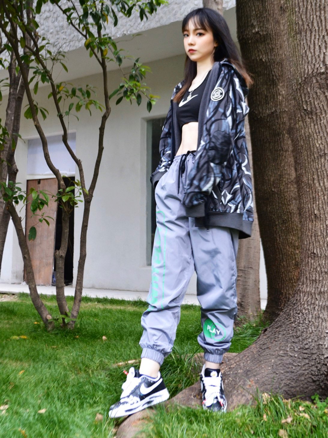👧🏻:164 44 👙:nike 🧥:clot黑荆棘 👖:why play 👟:af1权志龙 ⛓️:yeeelei studio 黑白灰的基础上 裤子的绿色花纹给全身搭配增添了一抹靓丽🍃 同时春天的气息又来了~小雏菊项链和小雏菊af1再搭不过了!!再来条黑荆棘酷酷的外套挡个风🌪不潮不出gai!!!