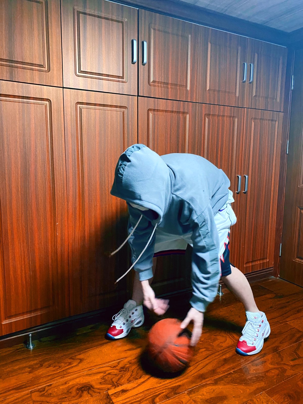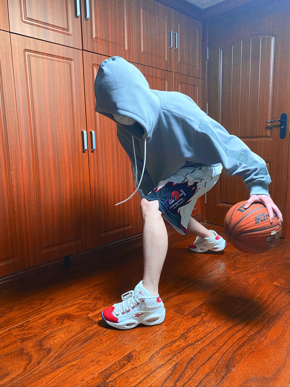 想去楼下运会儿球,刚出门就被叫回来…行吧,那就在家运一会儿… 在家也是要有仪式感滴…口罩没脱帽子没拉下,那肯定是换上我艾佛森的鞋,运起来才爽啊😄 2000年开始的四大分卫,西科东艾北卡南麦,我一直觉得科比和麦迪是一组,卡特和艾佛森是一组,所以穿了艾佛森的鞋和卡特的球裤👦🏿🤙🏼舒舒服服~