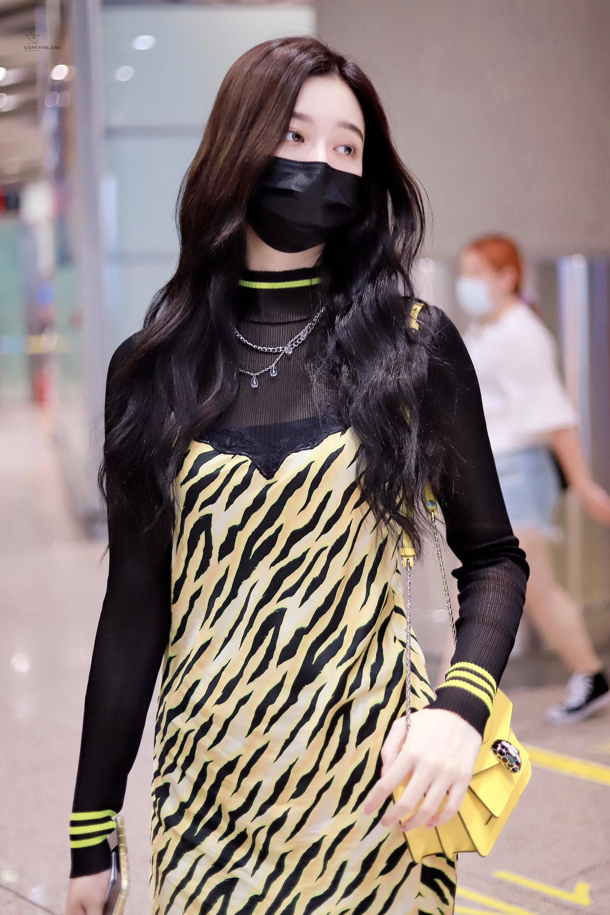 徐艺洋昨日长沙出发的机场✈️私服,黑色长袖打底衫搭配豹纹吊带长裙,可爱女生也可以秀出性感身材哦~