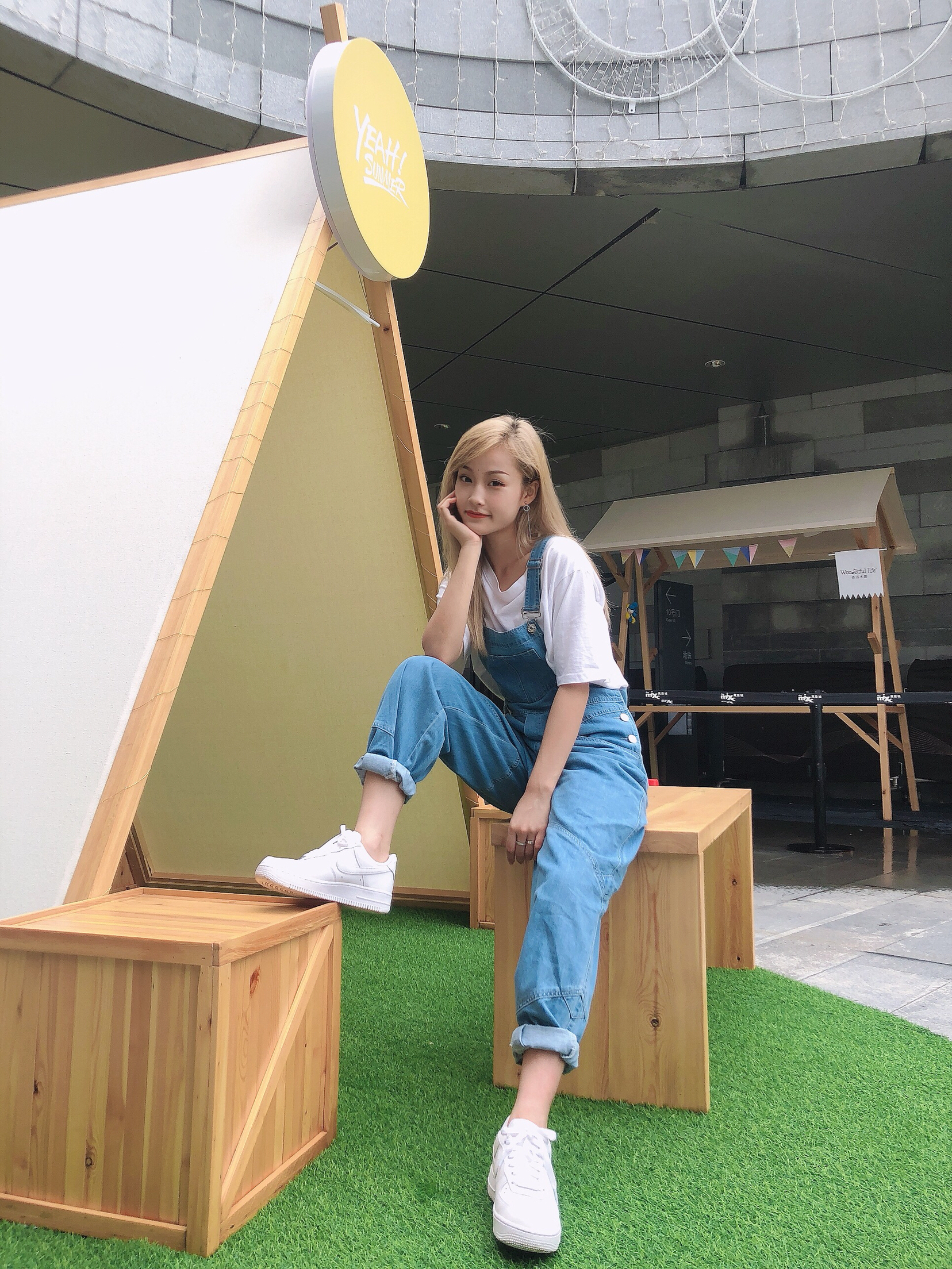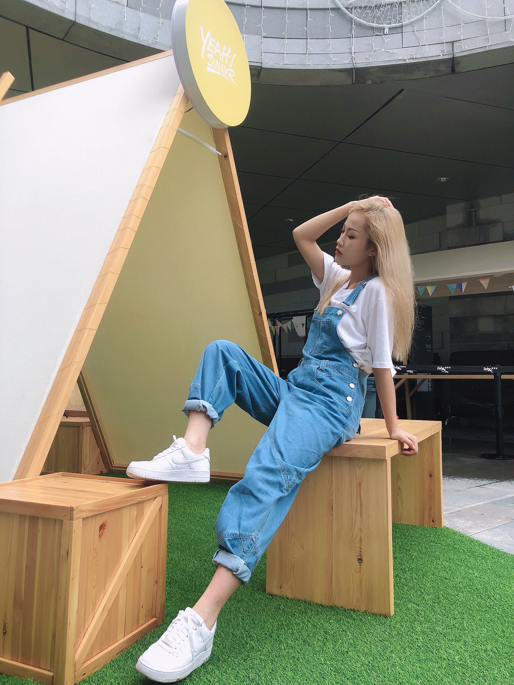 装嫩的一天要从背带裤开始喔 👔:baby同款背带裤 鞋子:空军1号 喜欢晴天 晴天就会快乐 济南的天终于快要放晴了(●°u°●) 」