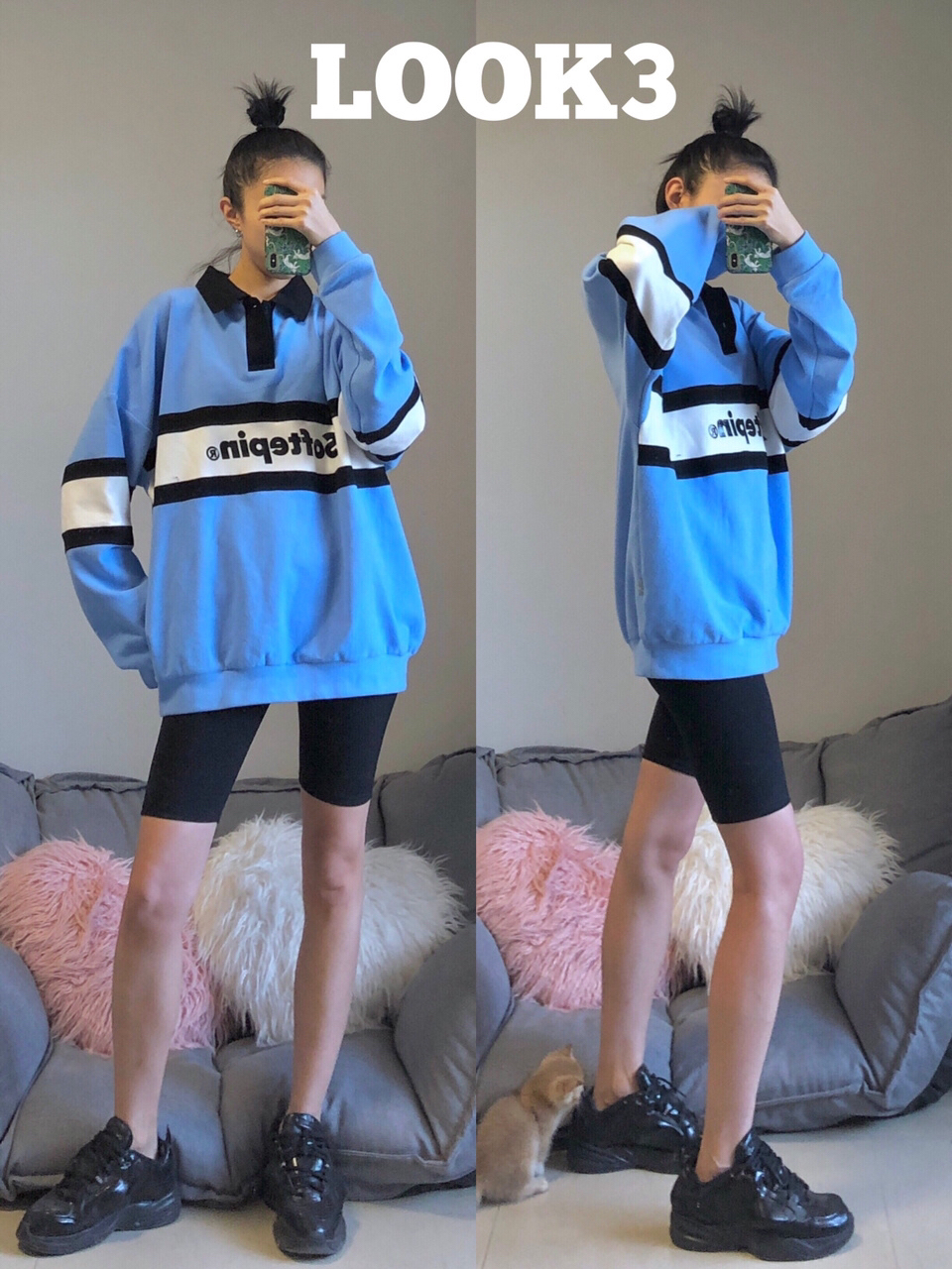 🖤运动中裤这两年一直很火爆,在不用担心走光的同时,还多了点帅气和运动感。9图有限,发一下我比较喜欢棉质黑色运动中裤的一部分穿搭。 🖤LOOK1——宽松男友款衬衣,配渔夫帽和领带会有一丢丢GD风的帅气,头发扎起来穿又有一点慵懒的小性感。 🖤LOOK2——同色系的上衣和袜子的搭配,整体搭配有点运动又很舒服,感觉随时可以跑两圈。 🖤LOOK3——毕竟清爽的蓝白黑色上衣,空调屋里或者冷的时候可以穿一下,男...