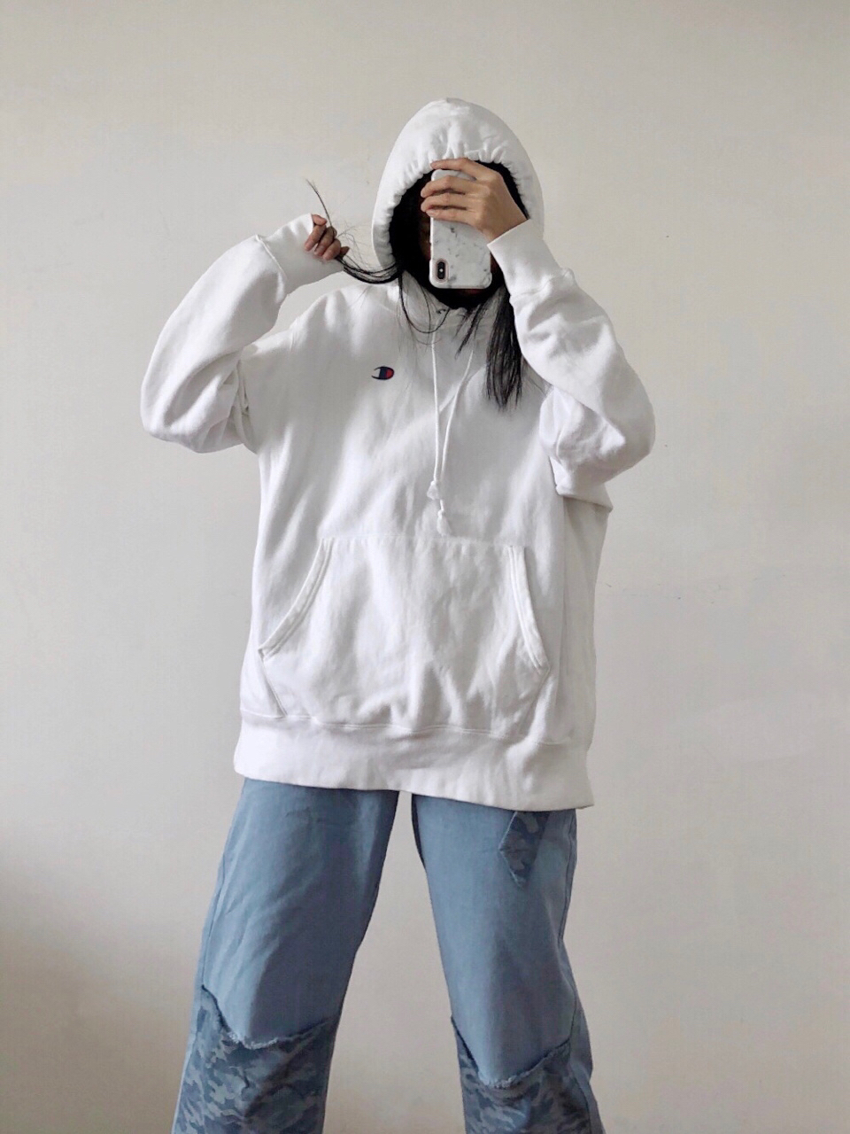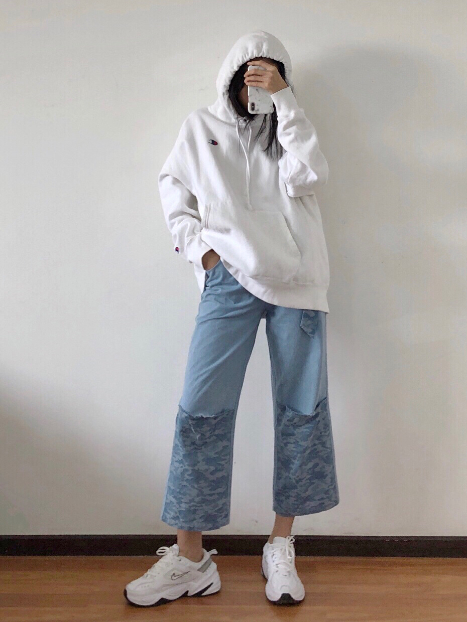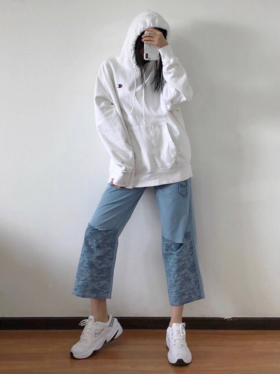 宽松卫衣和牛仔裤的搭配,有人会怕胖,其实不会的,肉都藏起来了,只要你脚腕够瘦,就会看起来很瘦。 💚卫衣:champion 货号41385576 L码 对我来说有点大了,微绒,再热应该穿不了了。 💛裤子: UNDORABLE M码 裤子中间是破洞的拼接款,有送腰带,但是我觉得有点“田园”不爱带。 ❤️鞋子:Nike M2K 这鞋最近出镜有点多,毕竟新鞋,比较稀罕哈哈哈哈哈哈哈