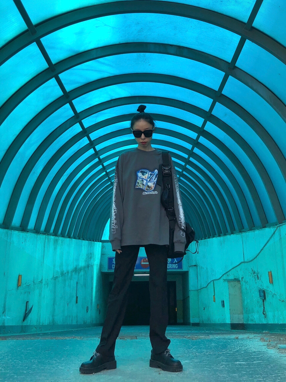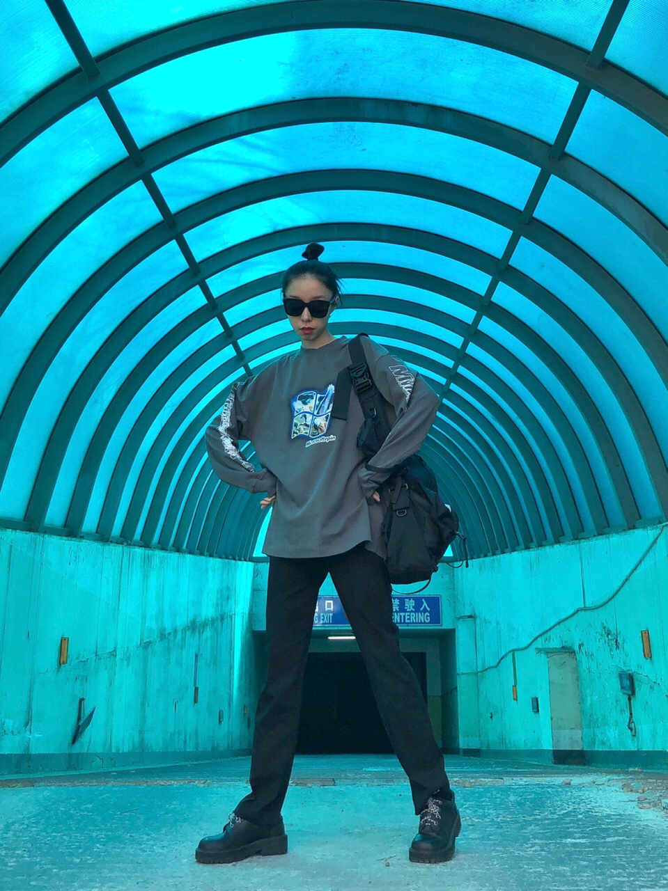 卫衣:SOFTEPIN brand L码 料子比较亲肤,非常舒服,薄但有型,夏天也搭配,感觉光腿穿也好看。 裤子:优衣库 货号409064 尺码64A 鞋:Unif 墨镜:Gentle Monster Dreamer Hoff 包:GINGER MI韩国代购