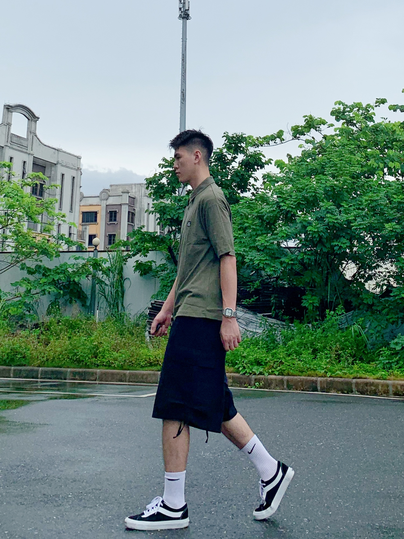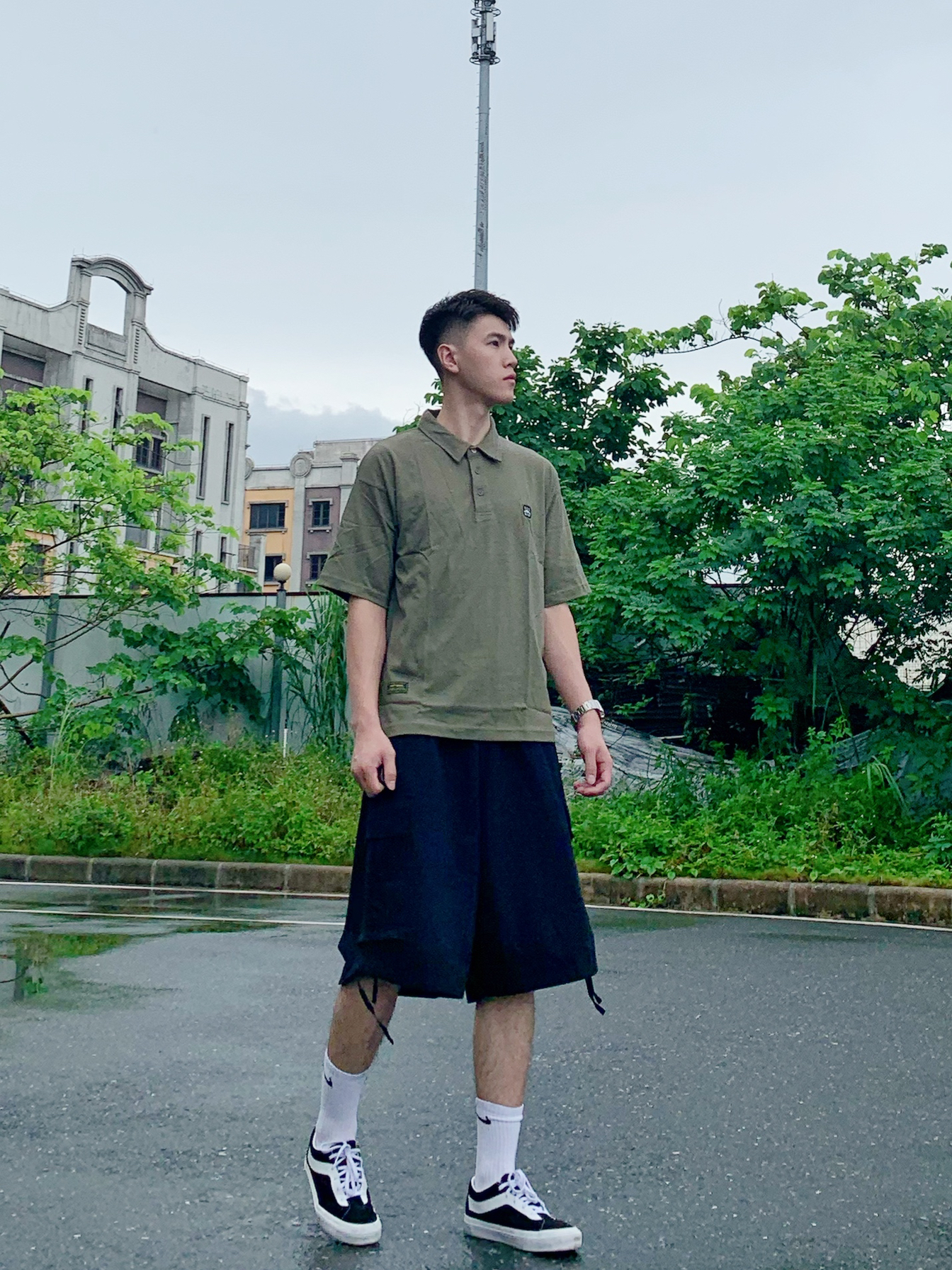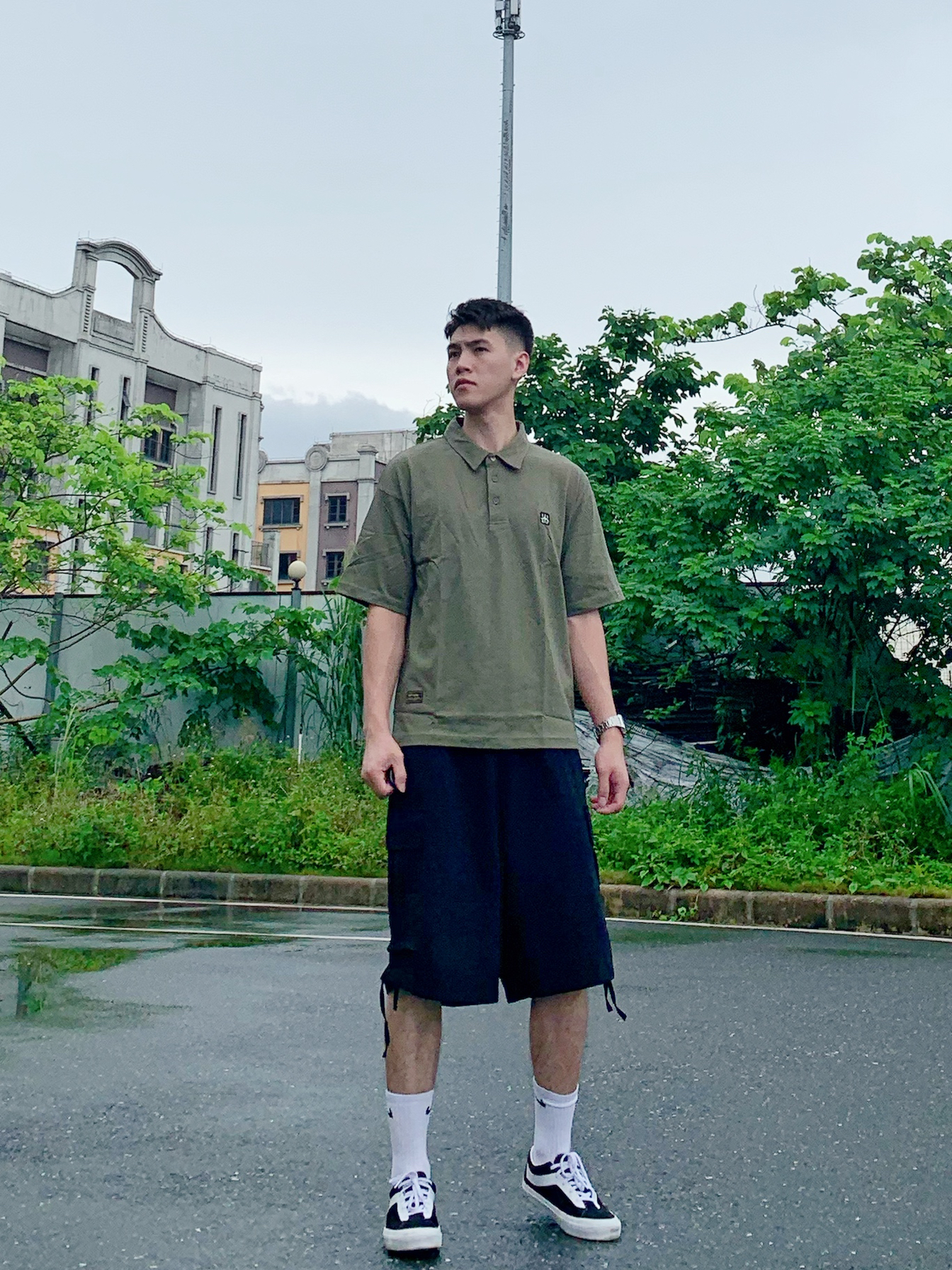 hello~可爱的小伙伴们,阿祖来了~🌟 T恤配短裤是男生夏季必备套装,衣柜一眼望去都是黑白T,那么今天给大家分享一件简约百搭的T恤——字母印花军绿色T恤👕衣服面料柔软舒适,绿色非常吸睛,整体看起来非常清新✨ 下身再搭配一条黑色工装短裤🩳版型设计简约,没有太多繁琐的装饰,任何场合都可以穿搭✨ 简简单单学穿搭,帅帅气气每一天💫 👔衣服:阿祖工作室🏠 ⌚️手表:卡西欧(AE-1200WHD-1A)