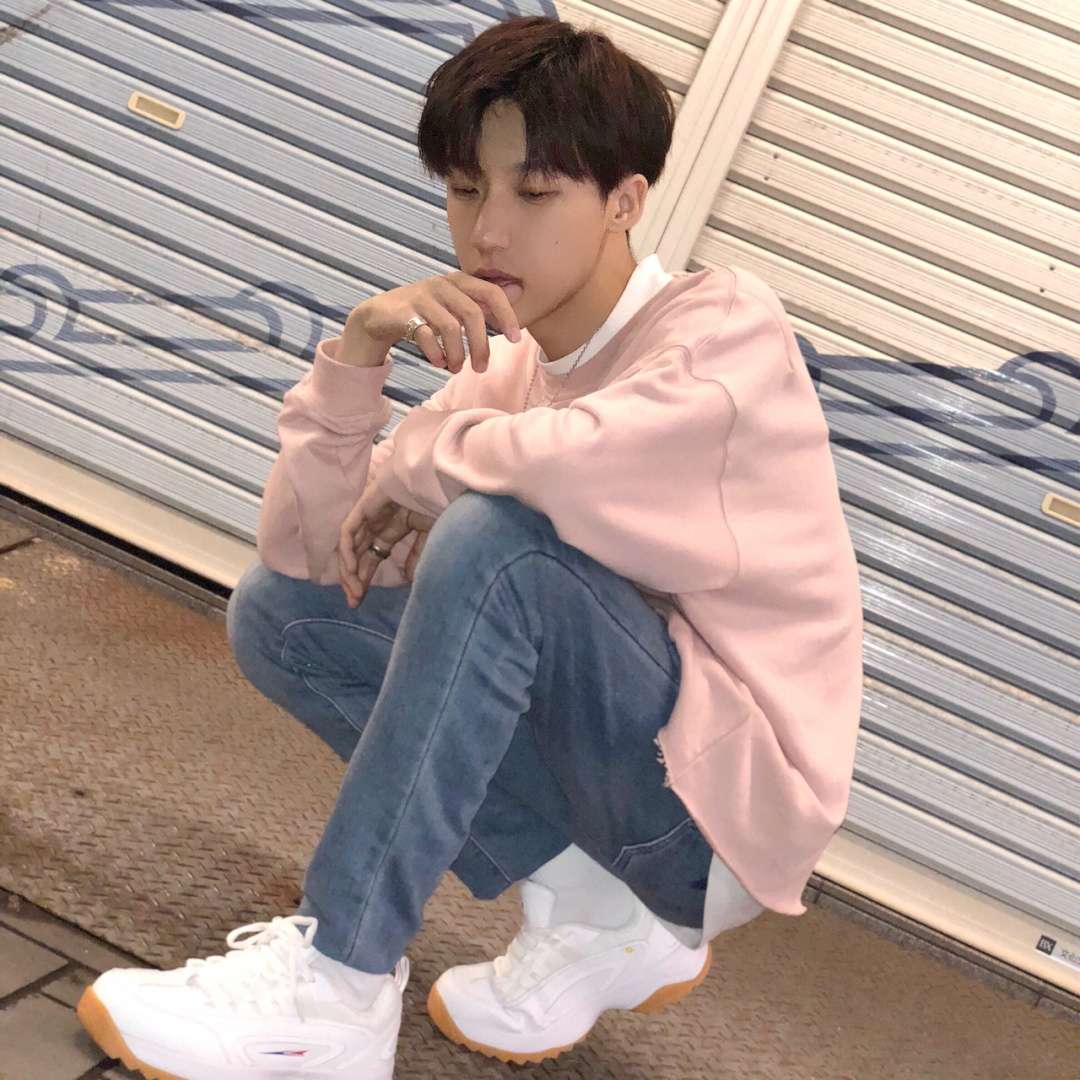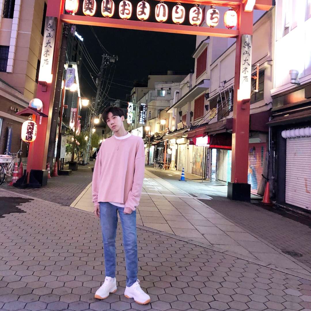 这次是粉色毛边卫衣的穿搭✨ 里面搭了件白T能突出衣服的层次感✨ 浅蓝色牛仔裤配浅色上衣非常搭✨ 营造出一种干净的感觉✨ 白色球鞋对于任何穿着都百搭✨ 日本旅行 搭配参考 男士穿搭