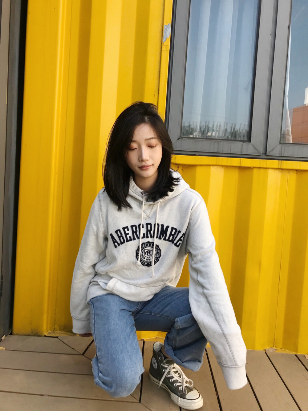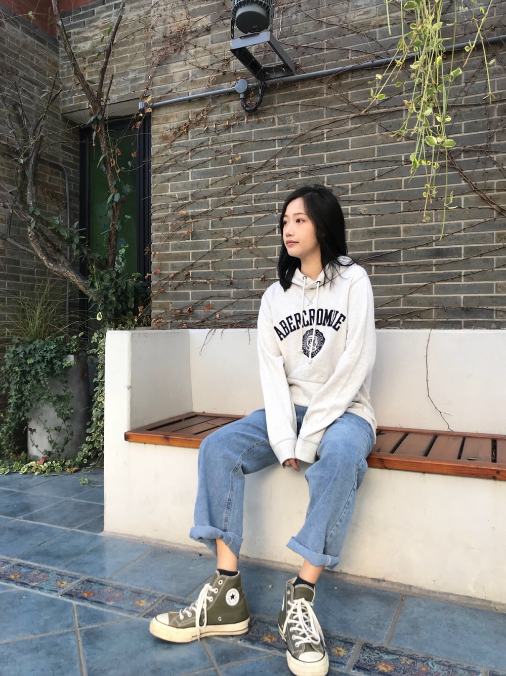 作为胯大的梨形身材女孩👧🏻 穿紧身裤的时候会选择oversize的衣服遮住屁股 要不就索性不选择紧身裤 所以这种直筒版型的牛仔裤👖就很合适啦~ 上衣是宽宽松松的连帽卫衣 下身就是宽松的牛仔裤啦~ 把裤脚卷起来更加的休闲~ OOTD: 👔:af卫衣 👖:牛仔直筒裤 👟:匡威1970S橄榄绿高帮