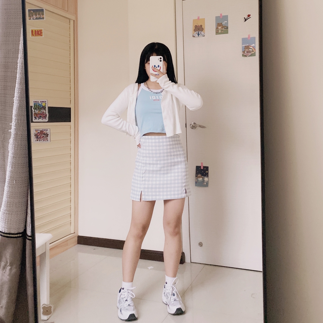 OOTD|155 102|初秋微胖小个子女生穿搭 👩🏻155/102 三围:89/65/90 大腿:51 小腿:33.5 肩宽:38 - 八月了我们这边已经逐渐开始降温了!夏天的短袖快要穿腻了,想穿卫衣想穿针织衫!!今天给大家分享一身偏bm少女的穿搭。我太喜欢他家针织衫了终于降温可以开始穿了!还有io!o的背心,这个蓝色真的太太太好看了。而且直接把副乳遮没!压根看不出我有副乳了。裙子也是我很喜欢的...