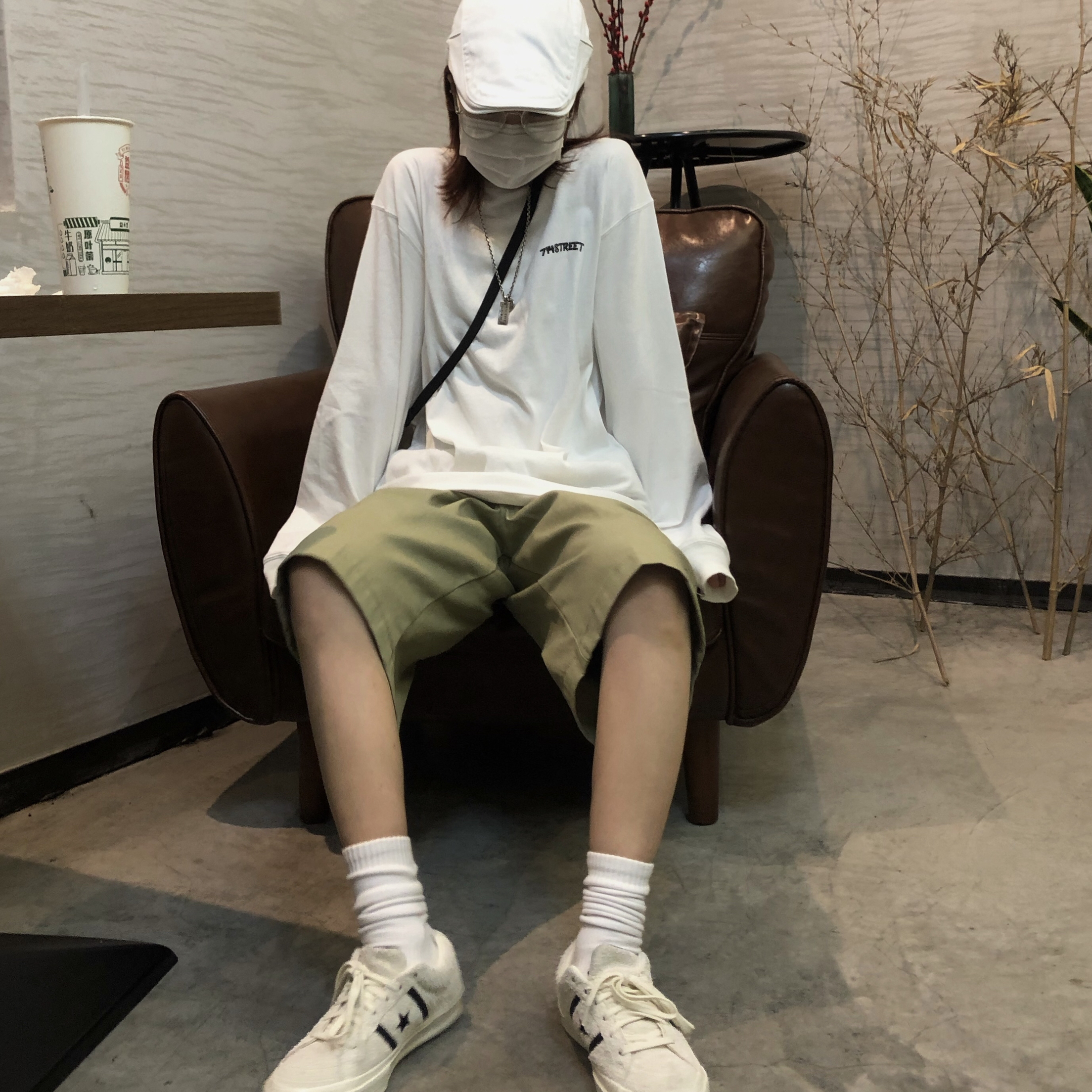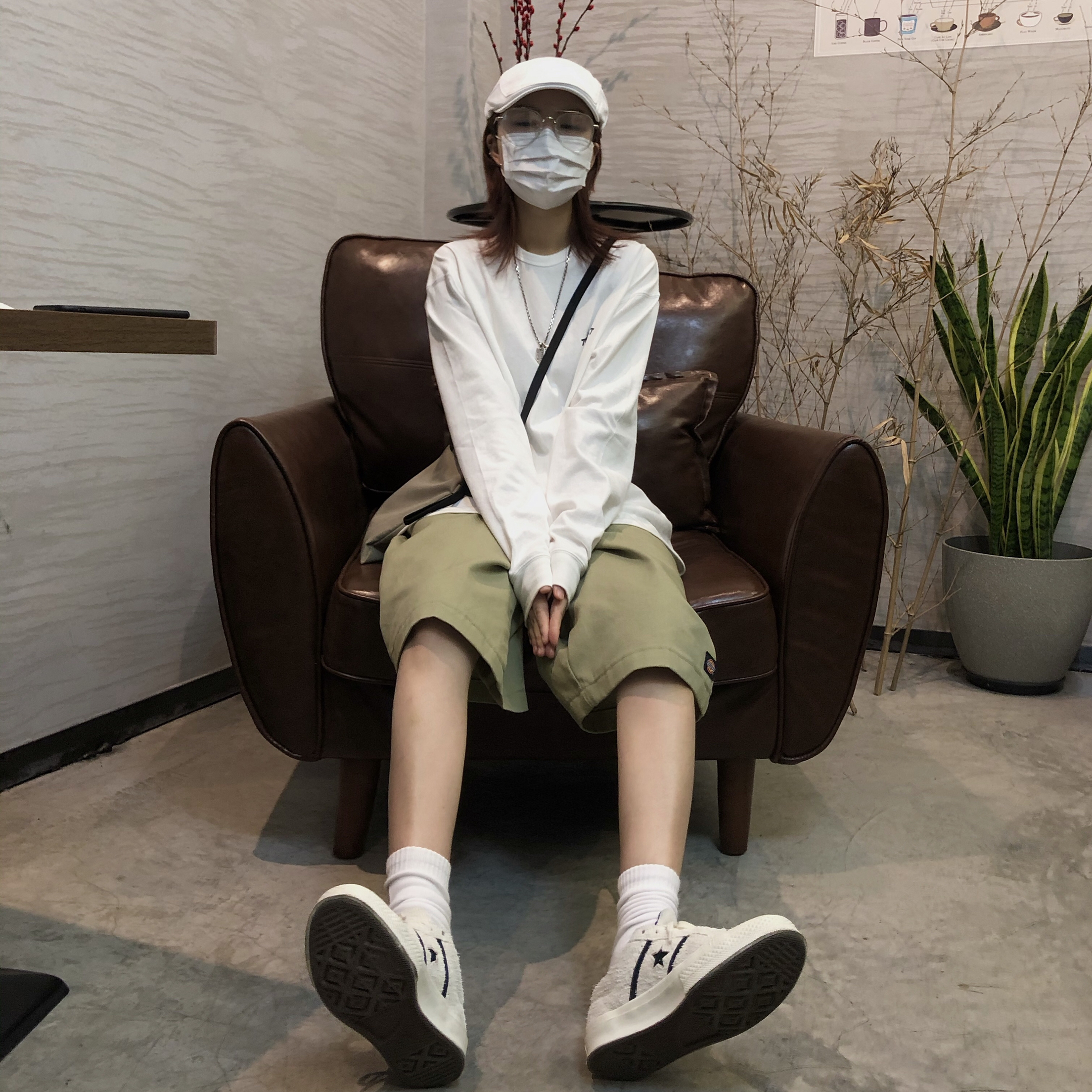 👔:714street 这件白t宽松又百搭 简直开学新衣必备! 版型比较宽松,面料也挺厚的适合初秋 搭配浅色系dickies短裤 上衣和袜子同色系搭配 简单又干净