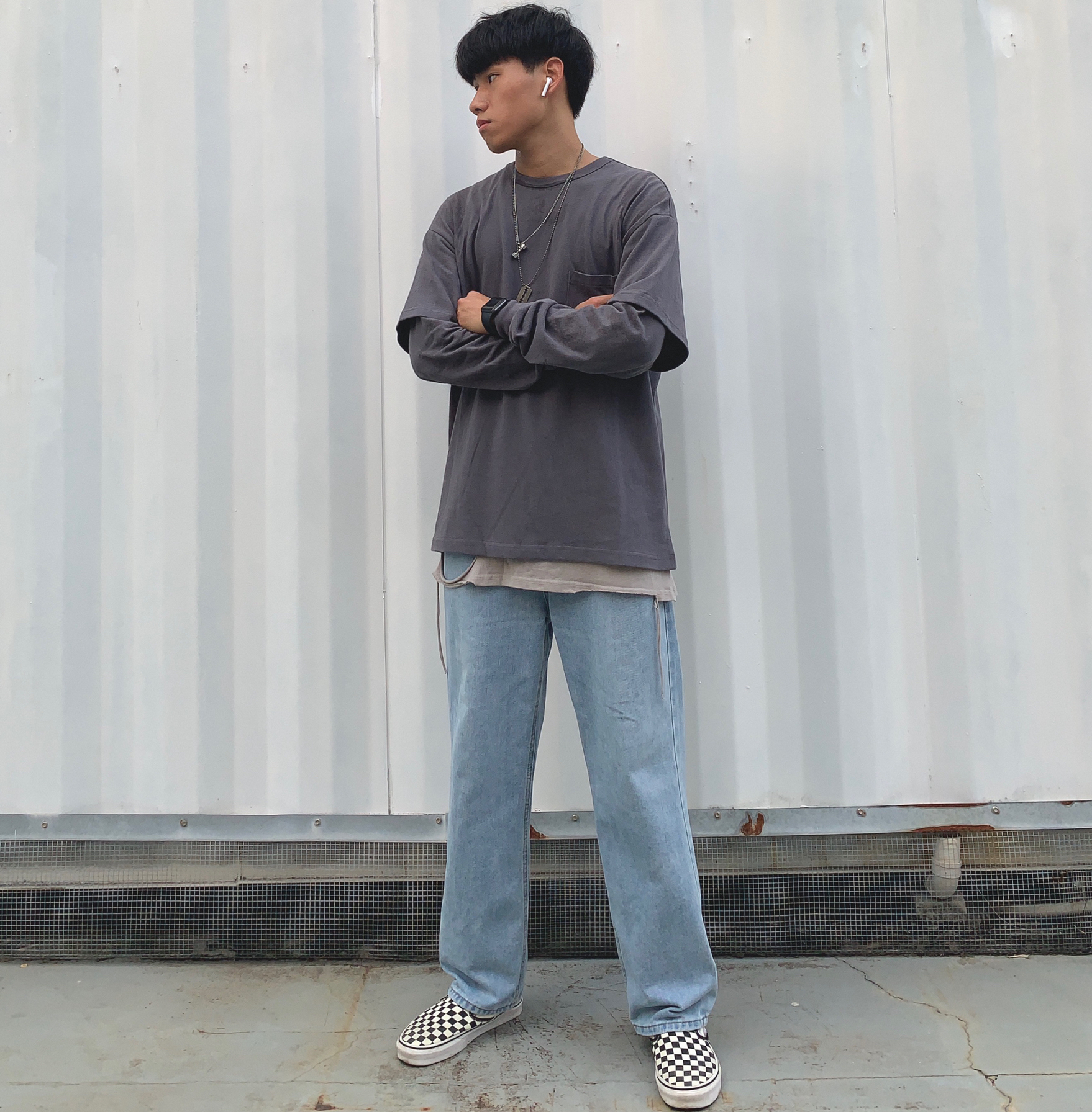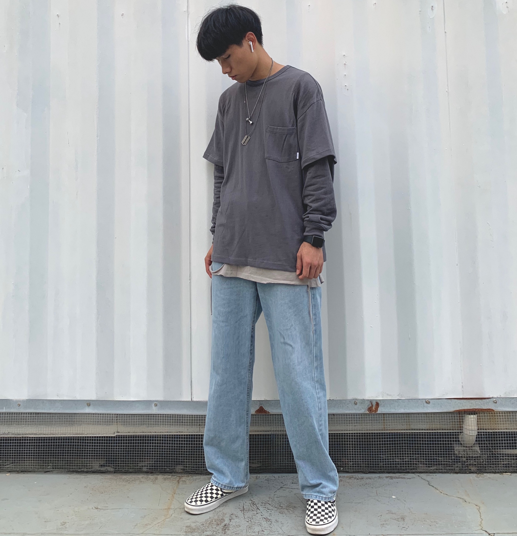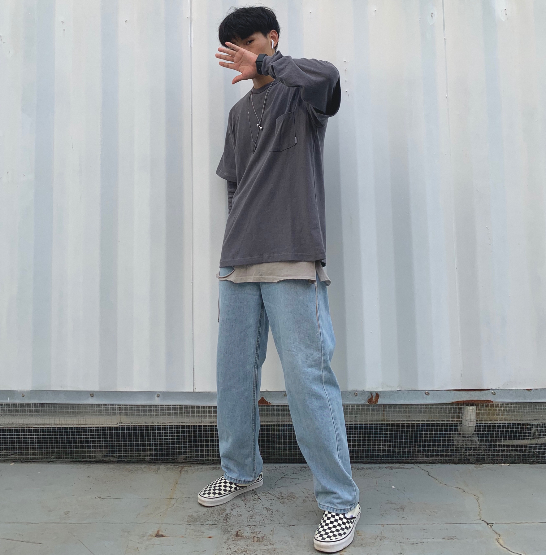 上衣:714street 内搭:黑衣先生 裤子:私物 鞋子:vans棋盘格 秋冬要到啦,一套秋冬穿搭安排上,一件叠穿灰色长袖印花短袖,长袖后面有个简约印花,简约好看潮流,使长袖看上去不那么单调,叠穿设计也是非常有层次感,裤子也是牛仔裤,整体显复古,一件内搭灰色破洞背心,展现出层次感,使全身搭配不显的单调,鞋子配上百搭经典的vans棋盘格,一套复古街头风的穿搭就完成啦!