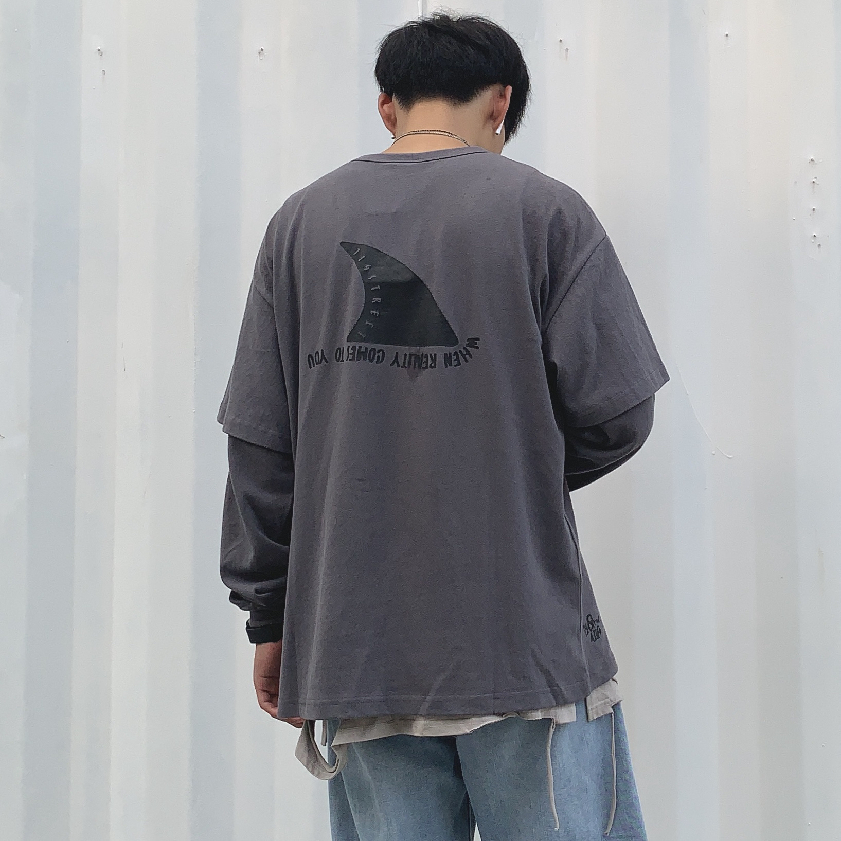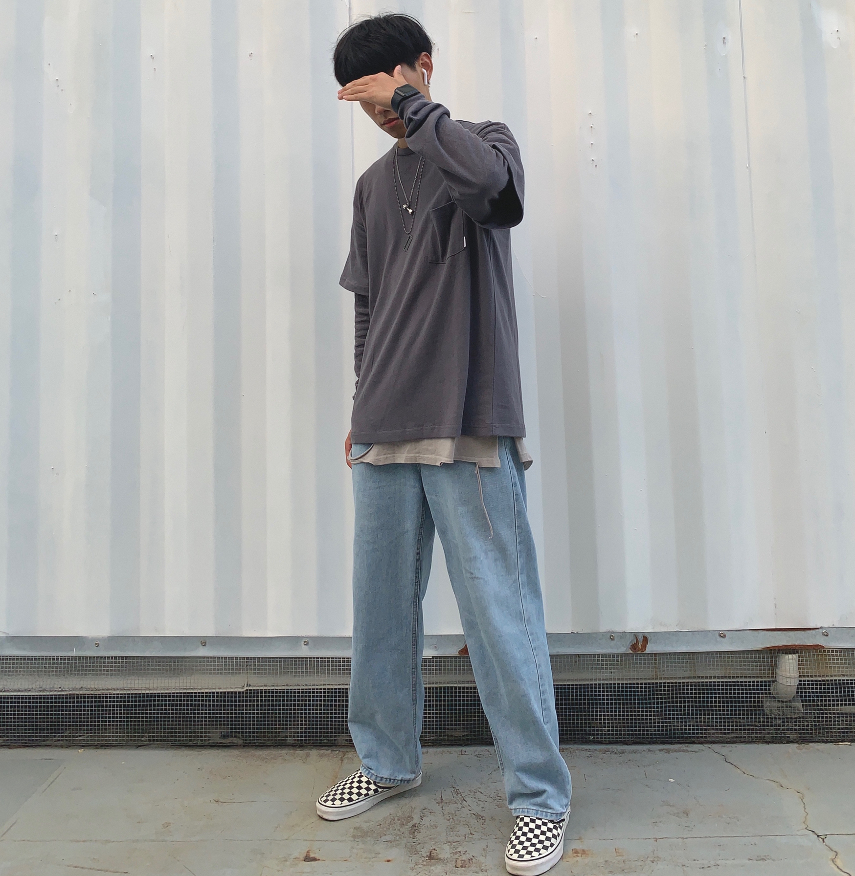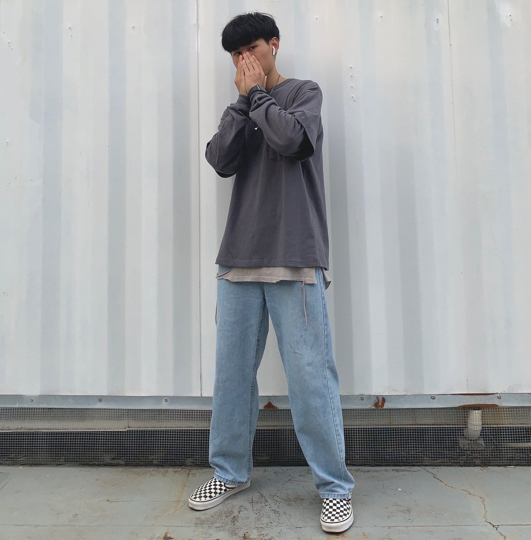 上衣:714street 内搭:黑衣先生 裤子:私物 鞋子:vans棋盘格 秋冬要到啦,一套秋冬穿搭安排上,一件叠穿灰色长袖印花短袖,长袖后面有个简约印花,简约好看潮流,使长袖看上去不那么单调,叠穿设计也是非常有层次感,裤子也是牛仔裤,整体显复古,一件内搭灰色破洞背心,展现出层次感,使全身搭配不显的单调,鞋子配上百搭经典的vans棋盘格,一套复古街头风的穿搭就完成啦!