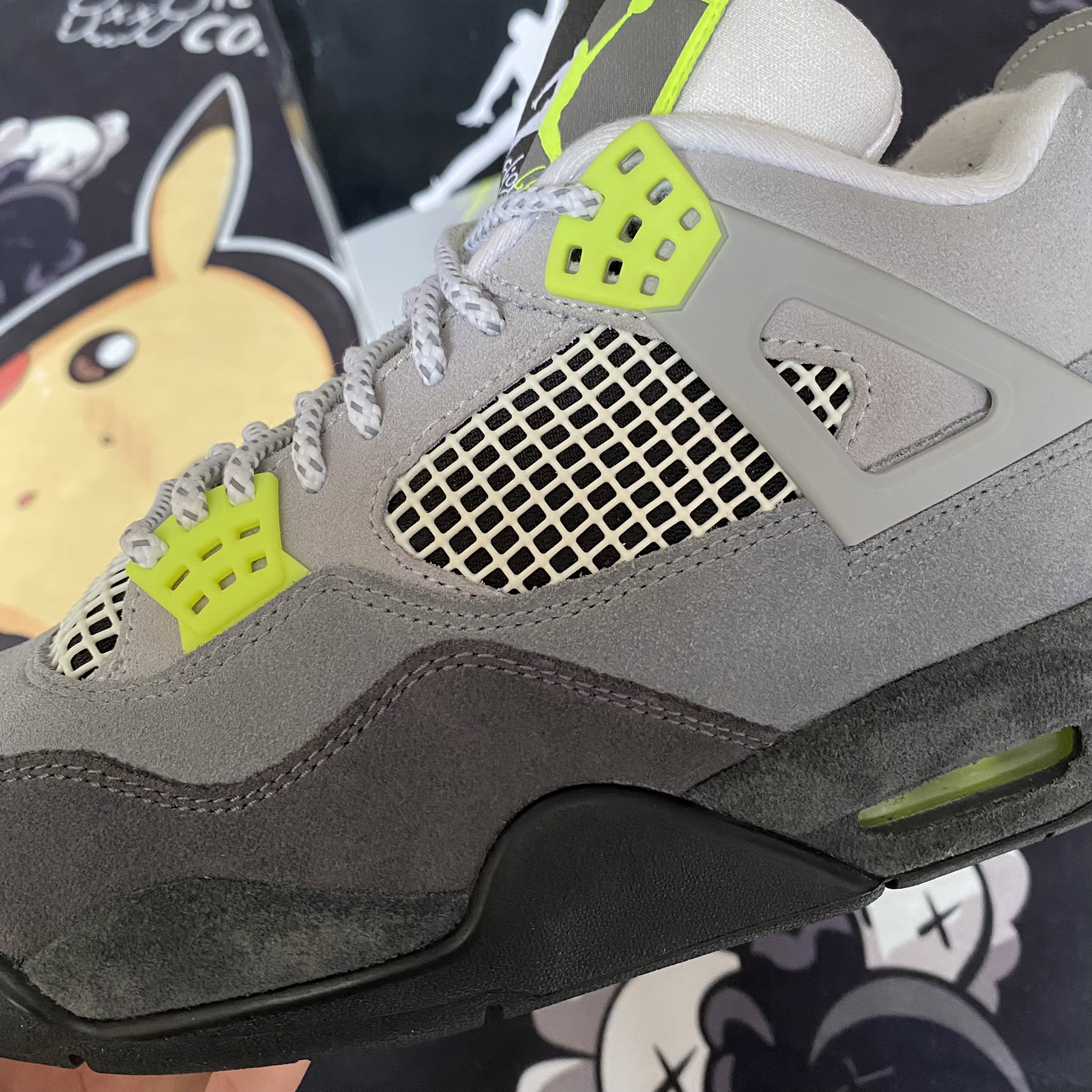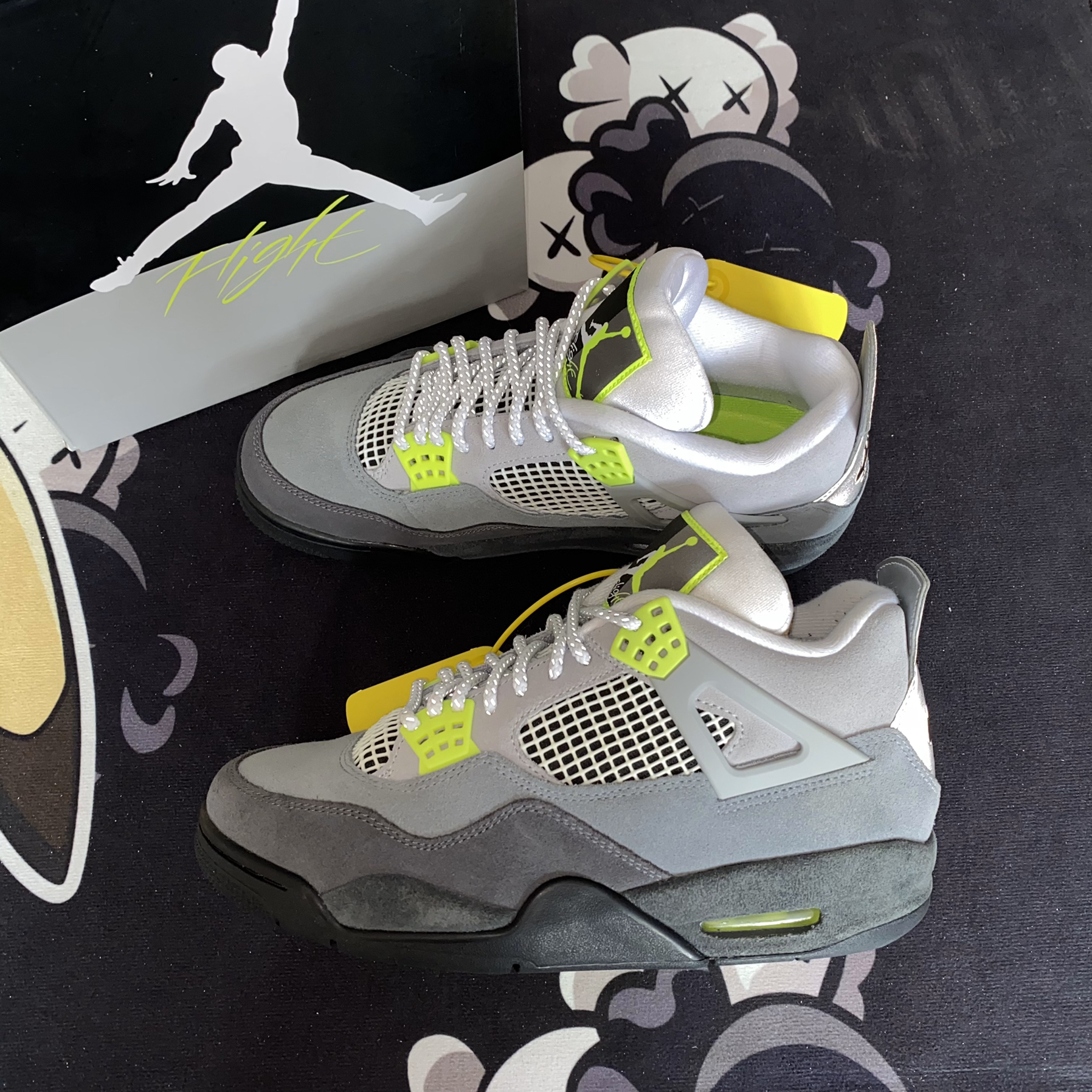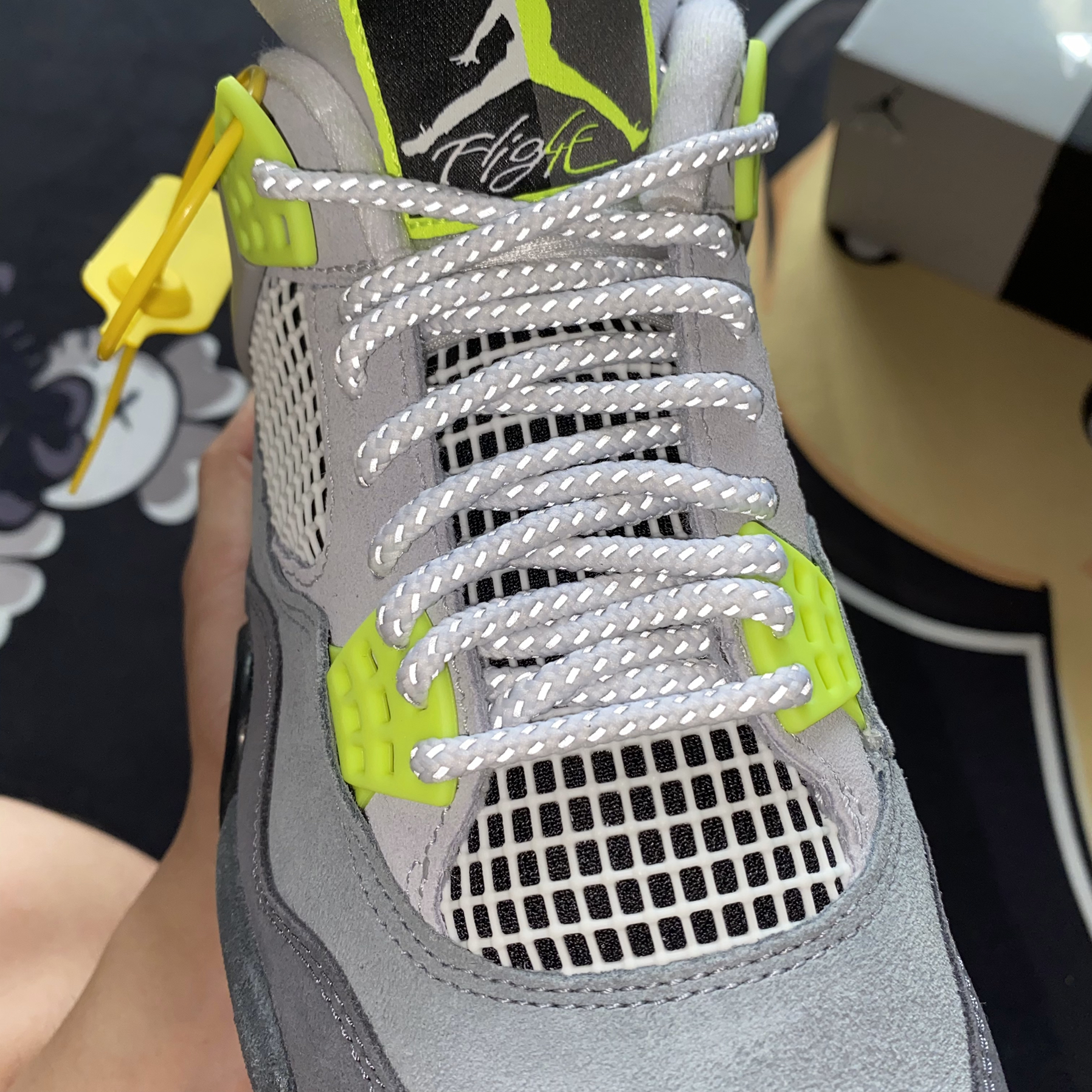 👟球鞋开箱分享(22) 👟名称:Air Jordan 4 灰绿 男款 👟货号:CT5342-007 👟开箱:第一感觉:这是灰老鼠抹了绿色的蜜? 👟材质和细节: 1️⃣整体鞋身全都是翻毛皮组成的,但颜色的深浅不一,打造了这款灰绿的极强层次高,相对于灰老鼠来说,更加夏天 2️⃣3M反光鞋带和后跟,让你在夜晚做最炫酷闪亮的崽崽。(悄悄说,虽然鞋带很帅,但3M材质让它比平常鞋带难抽动点) 👟...