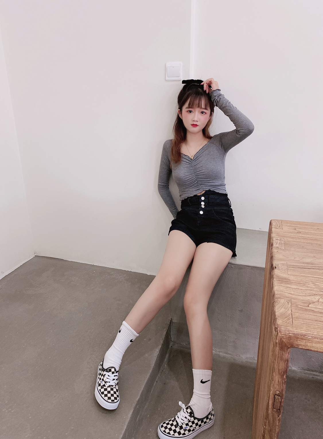 你们欺骗我 是因为我可爱嘛☹️ 👕:灰色泡泡长袖 👖:黑色高腰牛仔裤 👟:vans authentic 黑白格 主题灰是穿衣的友好搭配 显瘦显白🧴 慵懒的下午茶时光☕️简约风的穿搭风格 快来pick噢