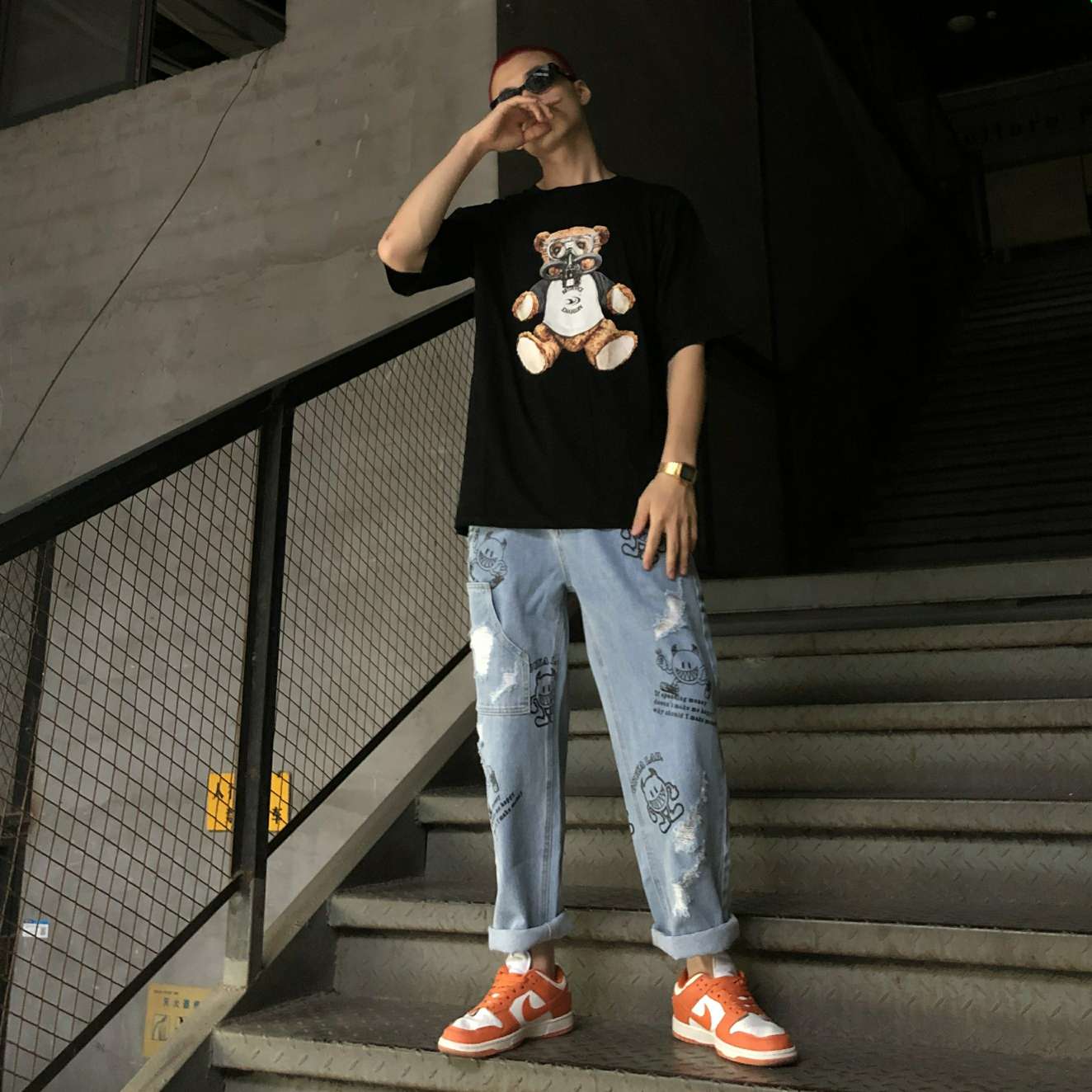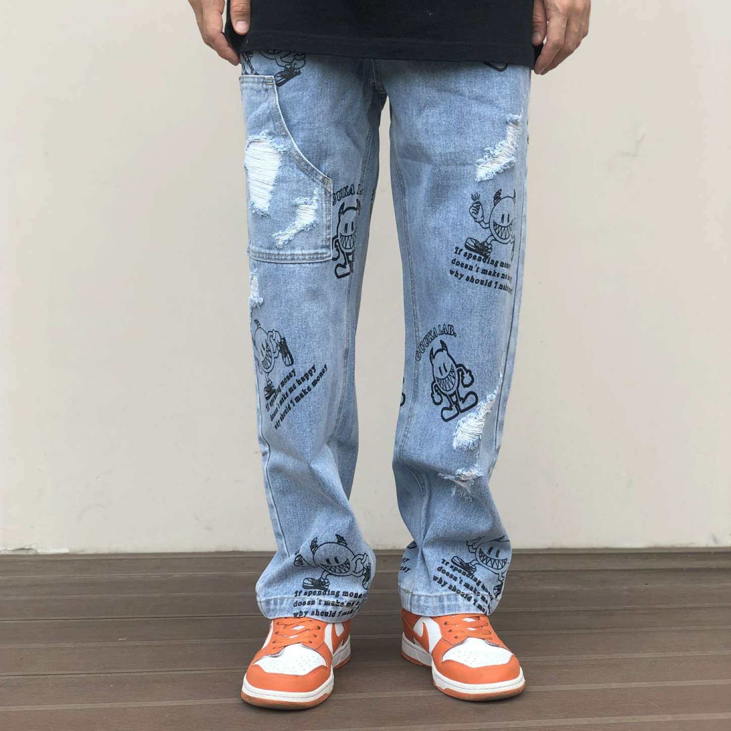 🙄想想从夏天的各色T恤、秋天的针织衫、到冬天的大衣外套……与之最百搭的下装永远绕不开牛仔裤,毕竟牛仔裤是流行了很多年都不过时的经典!✅ 🤷🏻♀️当不同风格的印花图案出现在原本粗狂不羁的牛仔裤上时,后者也获得了新的生命力。其强大的生命力以及多变的风格成为追逐时尚潮流的你的必备单品。👌🏻 ㊙️在印花风格百花争鸣的竞争中,小恶魔印花图案如同时尚界的一匹黑马,成为近年来的潮流元素。💁🏼♀️GUUK...