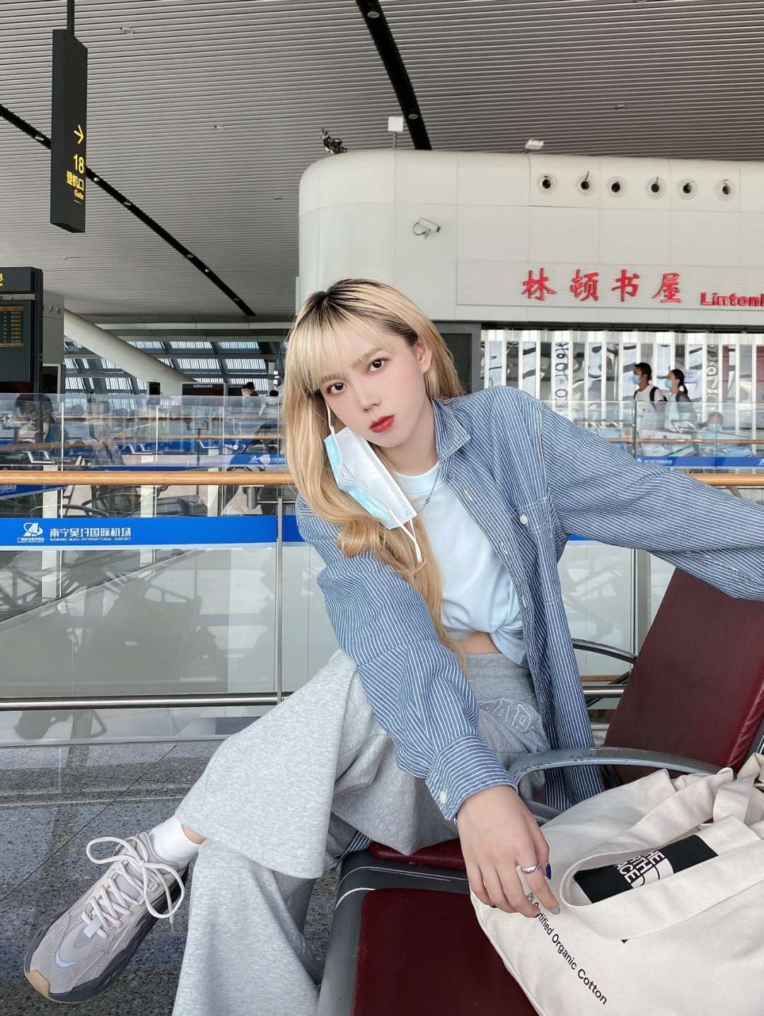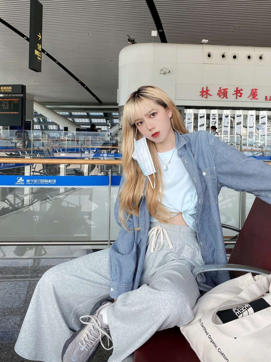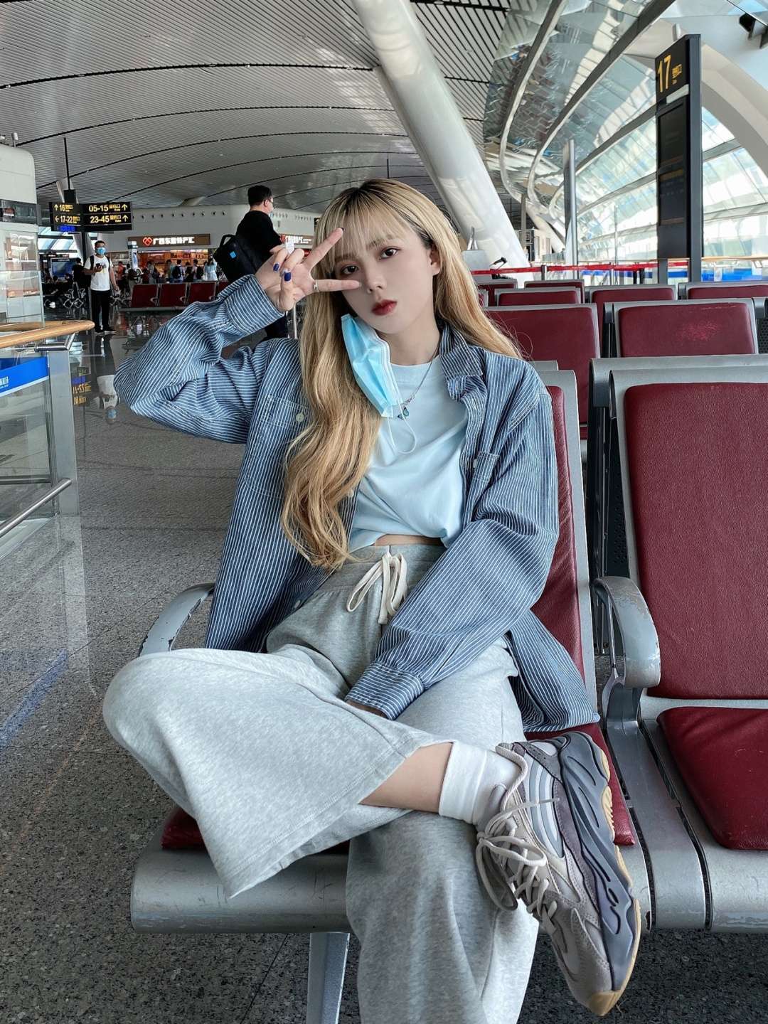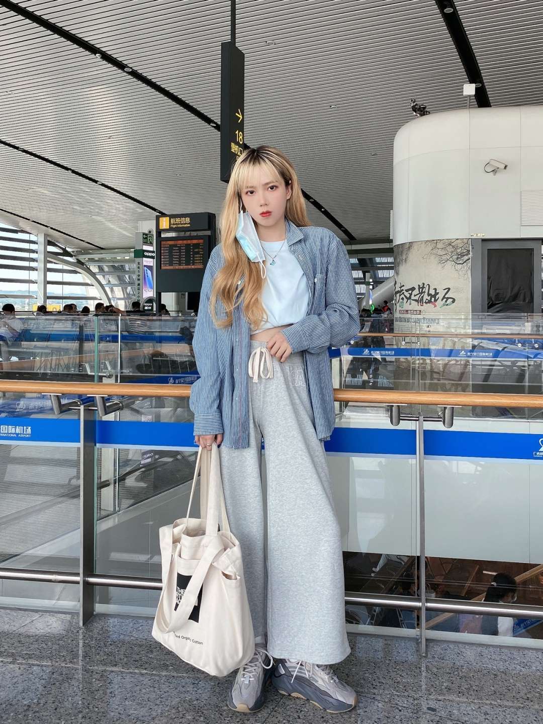ootd | 机场穿搭 舒适蓝灰系✈️ 这篇是舒舒服服的机场穿搭✌🏻 蓝灰系舒服的一身🧊 💬 outfit T恤:COS 料子真的hin舒服了! 衬衫:优衣库 我最最爱的一件条纹衬衫了 几乎每次飞都带着 坐飞机必备单品 裤子:GAP 544151 不懂还找得到嘛 好久之前买的 太好穿了! 鞋子:Yeezy 700火山灰 包包:The North Face
