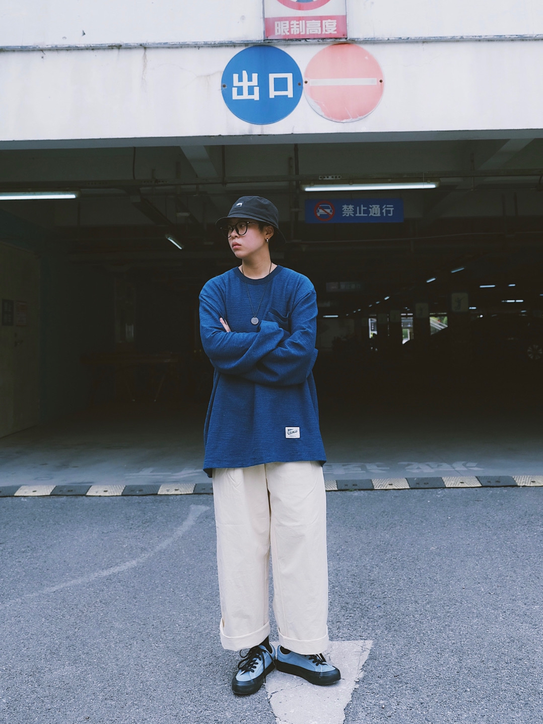 👔:LR made 👖:LR Made 👟:Matnut 搭配灵感:蓝色的牛仔长袖,又简单又百搭!配上杏色的直筒裤,整一套看起来就很清爽,也很日系啦~色彩搭配:蓝➕杏色/白色/黑色