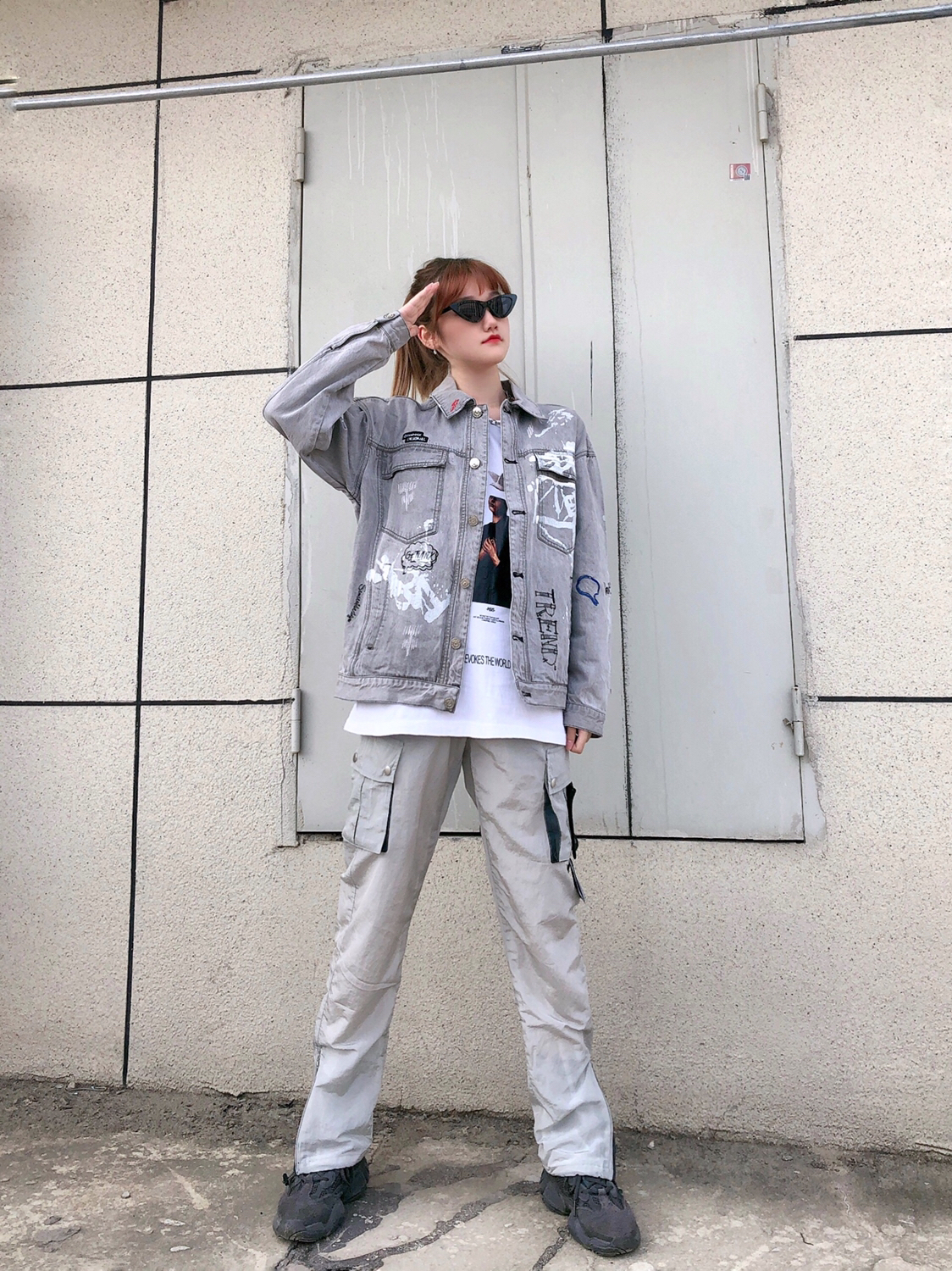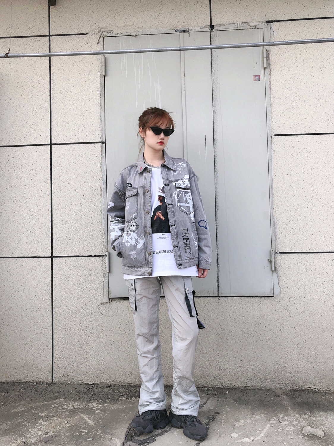 👕:M5IS 艺术空洞的感觉 简约不简单 版型显瘦 料子很舒服 出门随便搭配都很赞 他们家一直都很棒 👔:GENANX 很街头的一件牛仔涂鸦外套 烟灰色 艺术性极强的设计 局部还有刺绣点缀 是入秋不错的选择 👖:BLOOART store 很独特的工装裤 面料是采用很轻薄的 会很透气 侧边有魔法贴的设计 裤脚也有拉链 很特别 显瘦 喜欢 👟:NIKE M2K 这个白银真的很百搭 这个鞋...