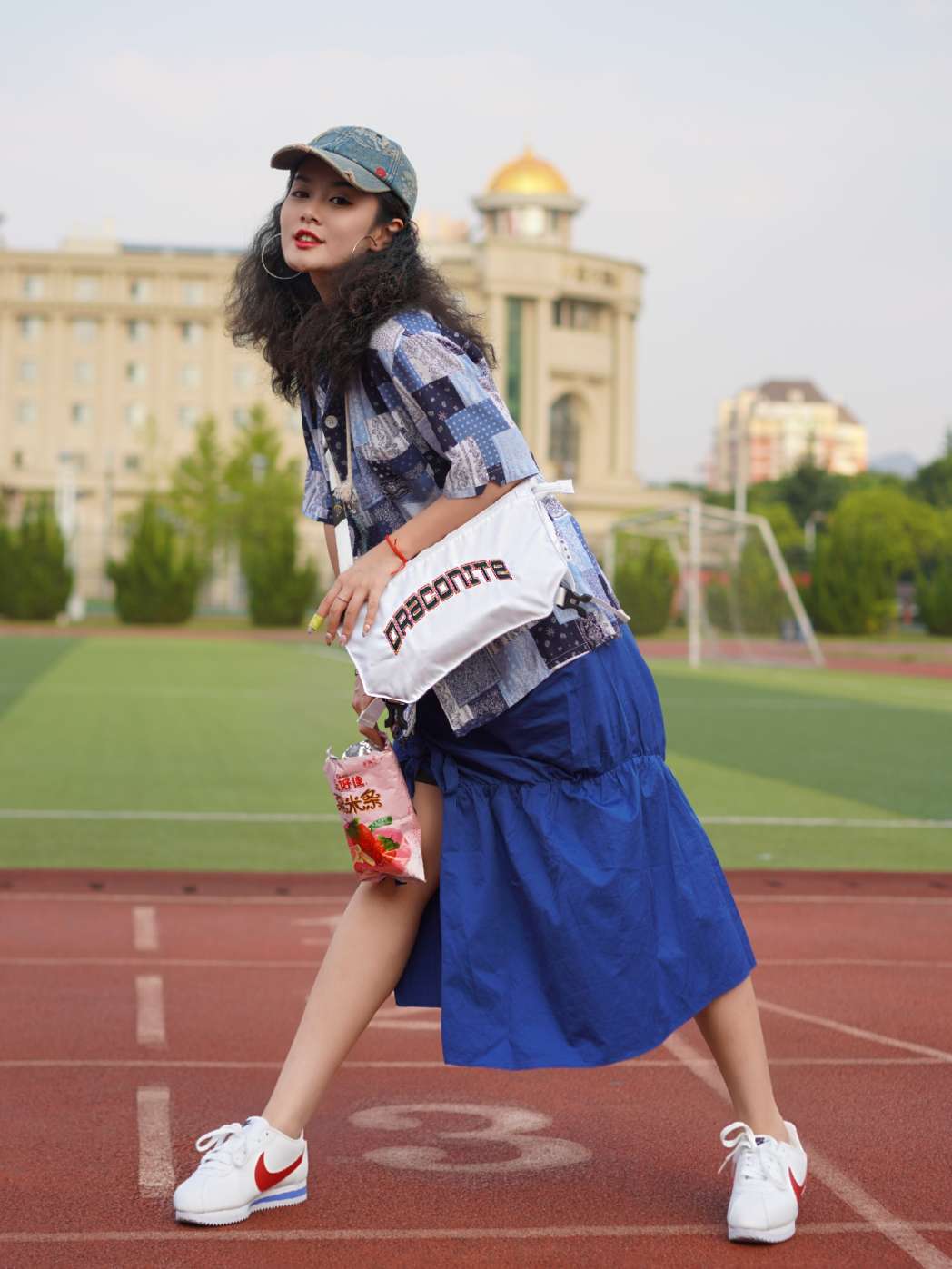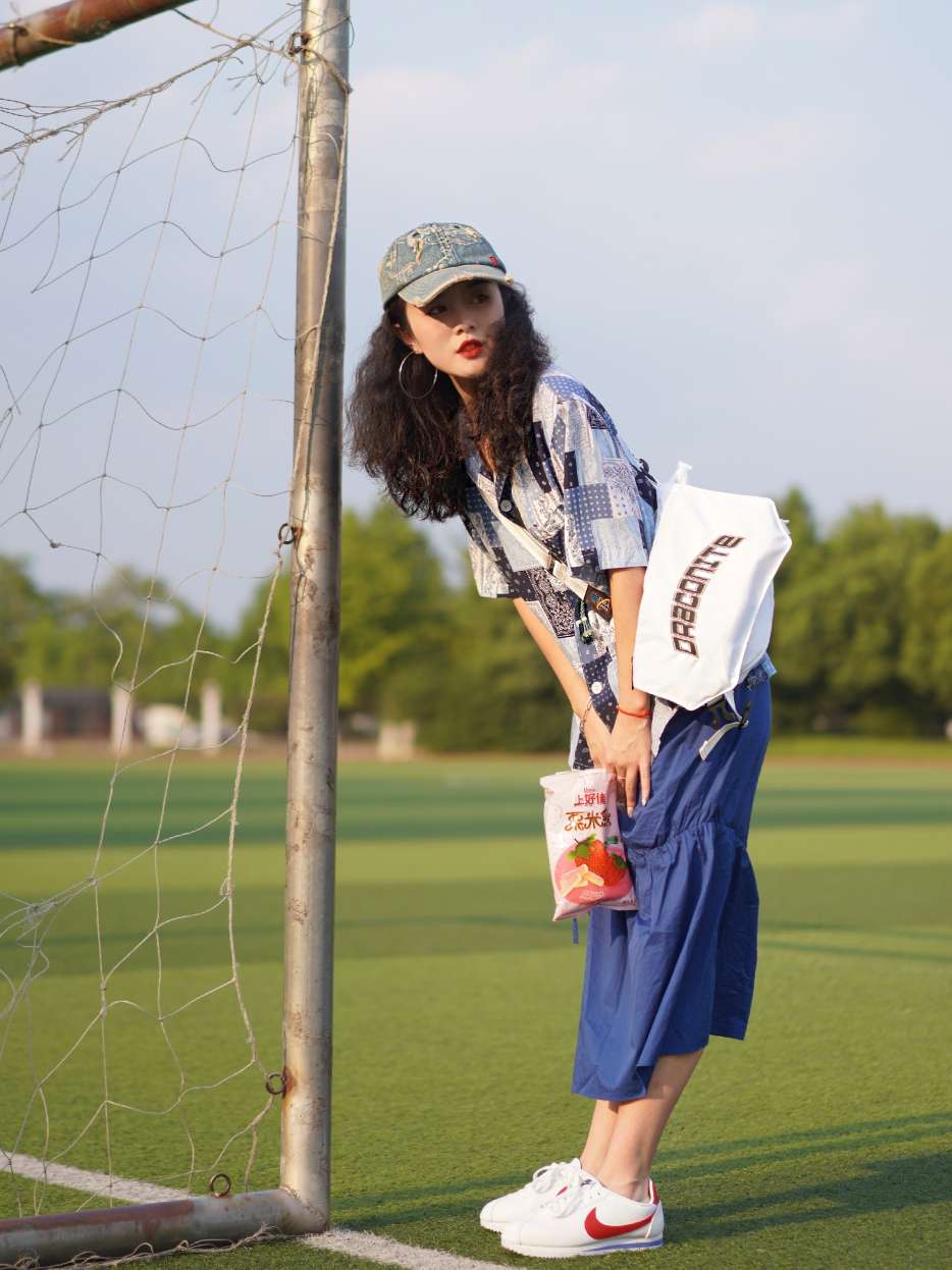 你会如何迎接秋天 帽子:初弎 上衣:ALORS JOINTIF 包包:DRACONITE 裙子:私物 鞋:NIKE 你会如何迎接秋天呢 对我来说的话什么都不如再穿一次裙子 再休闲地吃吃零食更实在了 蓝色与白色是最合适的搭配 所以就搭配白色球鞋就会很好看哦!