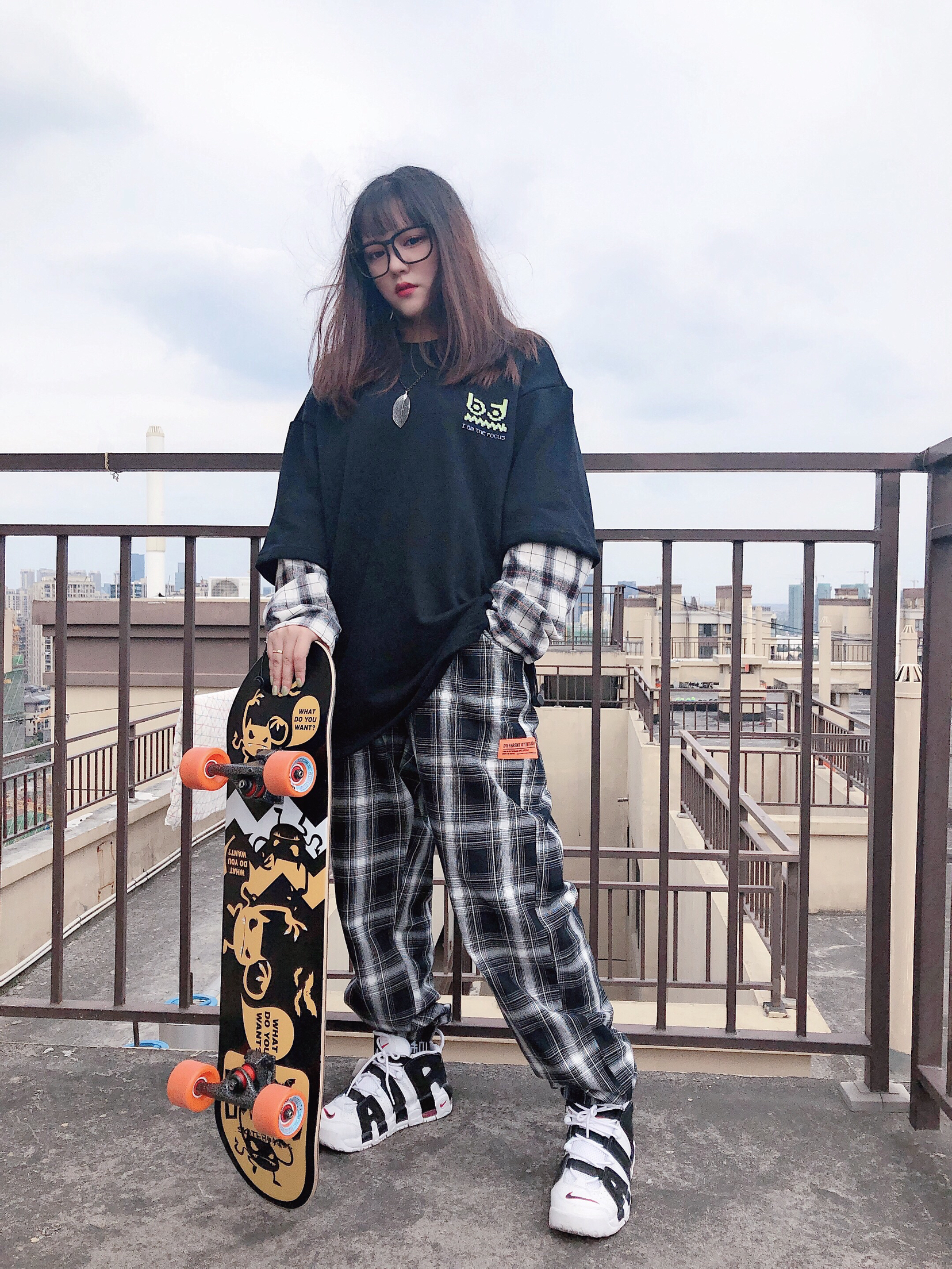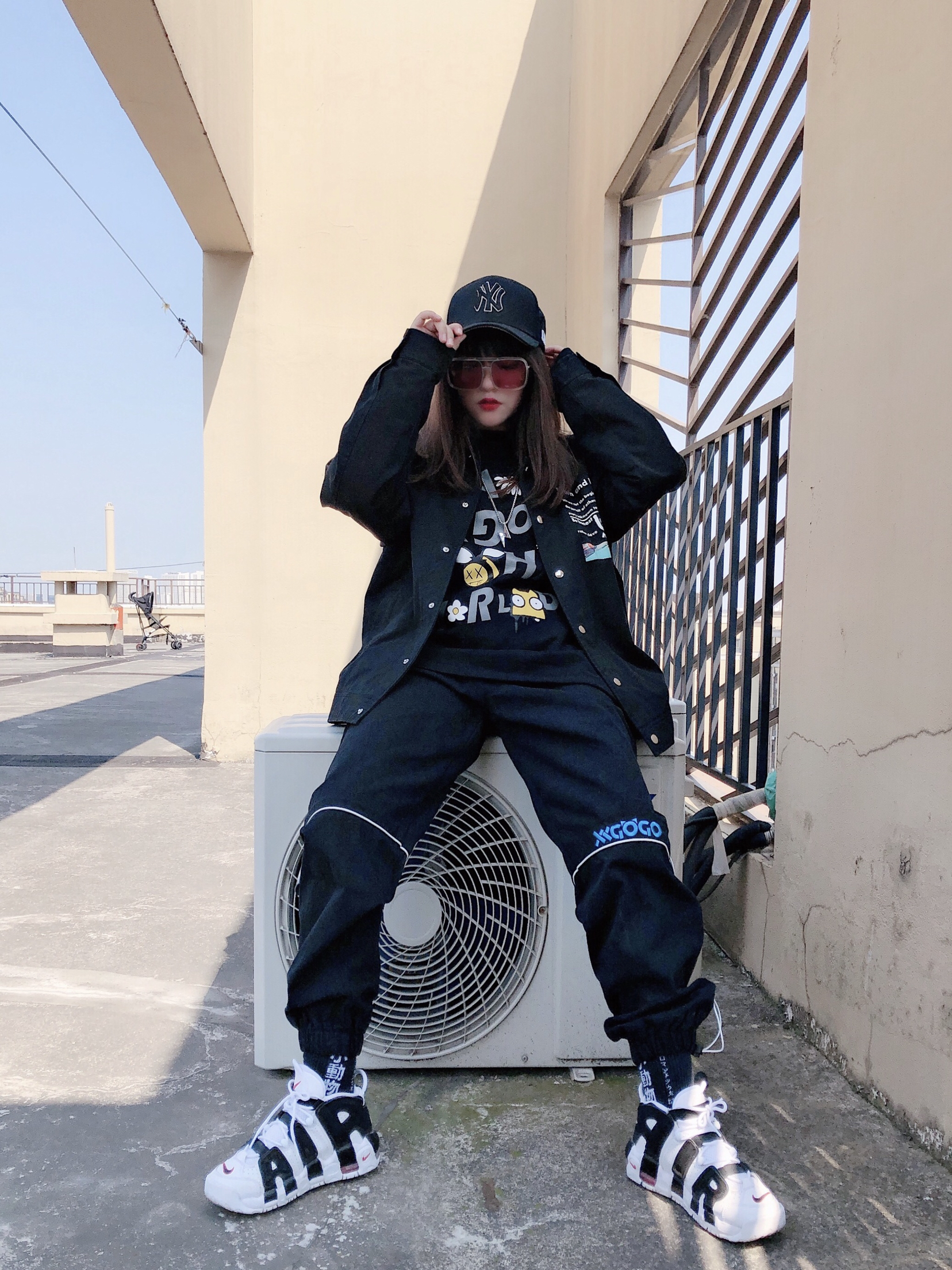 秋天来啦,夹克外套少不了 内搭:XXGOGO 黑色的印花卫衣,单穿和内搭的不二之选 外套:BT 大齿怪的印花很有特色,涂鸦街头风扑面而来,打破了黑色工装的沉闷 裤子:XXGOGO 抽绳设计的束脚裤很搭这一身,蓝色的刺绣印花logo点亮主题,和夹克也很呼应 鞋子:皮蓬熊猫 鞋子当然要选街头风的皮蓬,增加厚重感不单薄 项链:GENANX 帽子:MLB