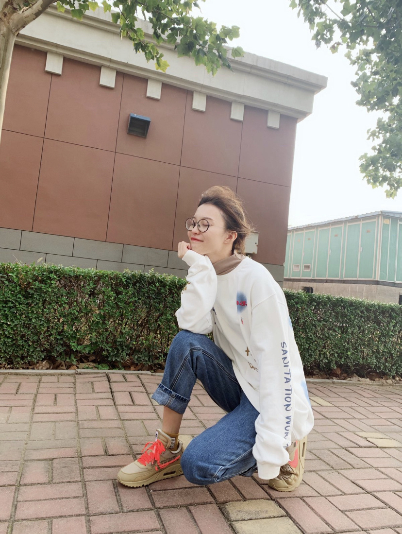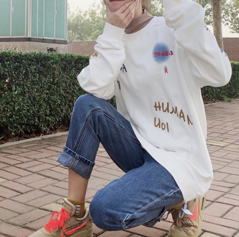 超好看的卫衣穿搭打卡🗣 🗣身高:170 体重:90斤 👕:fearom某宝店 白色卫衣比较单薄但是质感超级棒,里面我穿了一个棕色打底,因为河北太冷了!打底是unifree都是女装,男生慎点! 👖:韩都衣舍 👟:nike✖️off white90 超级喜欢的沙漠色我最近最爱的一双鞋,虽然穿出去同学问我为啥不剪防盗扣,让我真的不知道说什么好…… 总结:上衣M码宽松,裤子S码合适,鞋子偏小半码!
