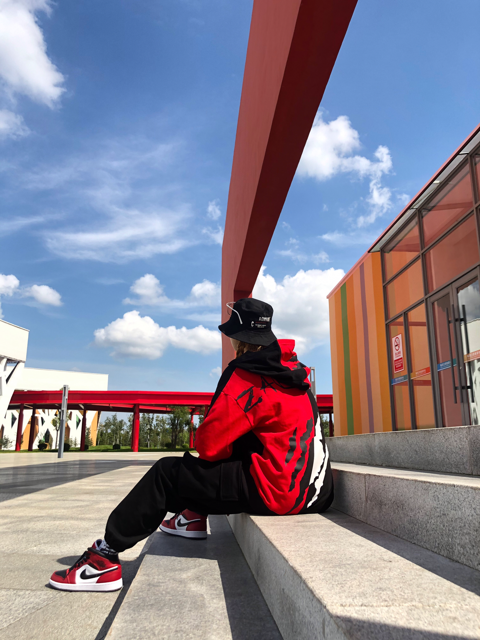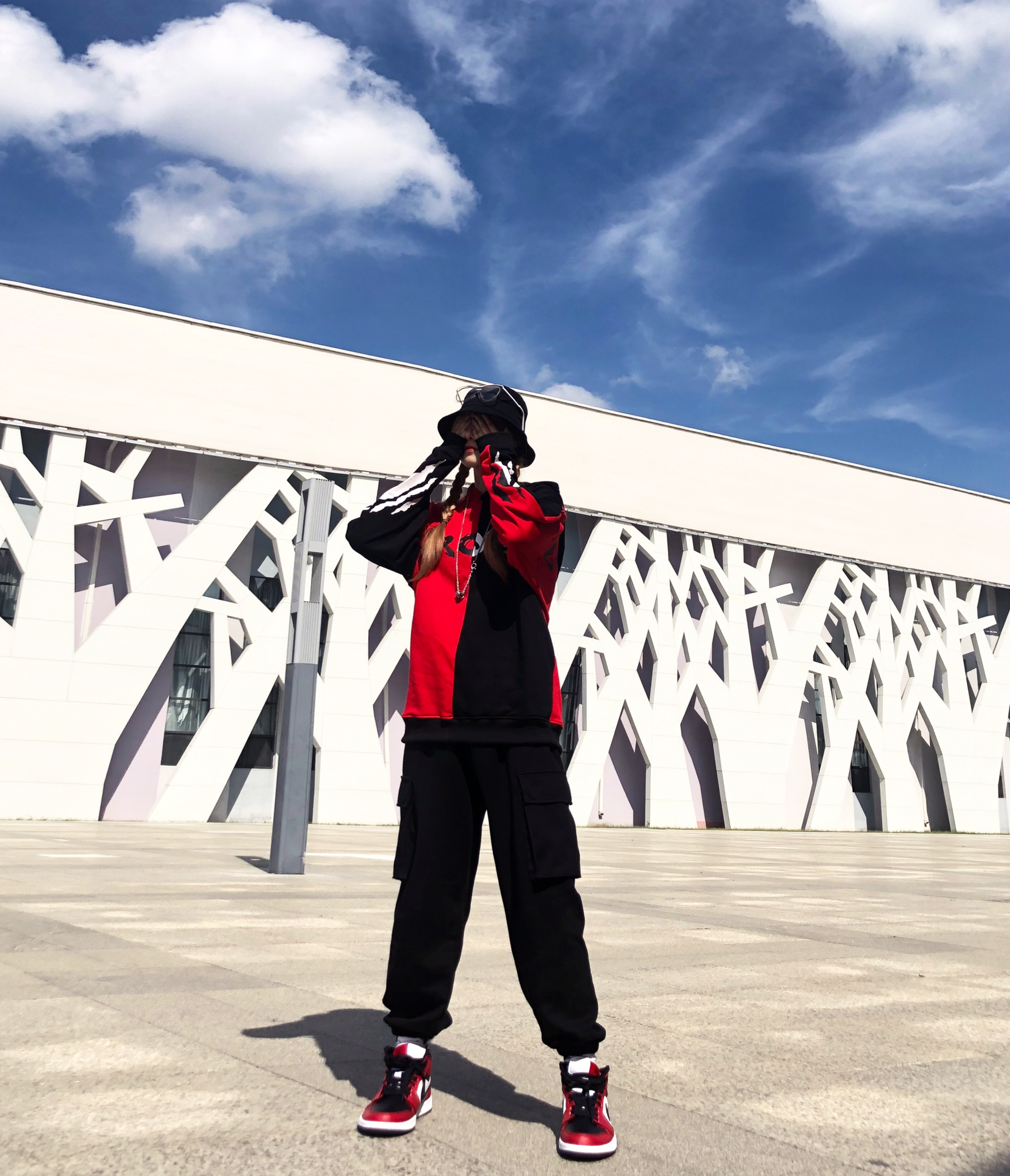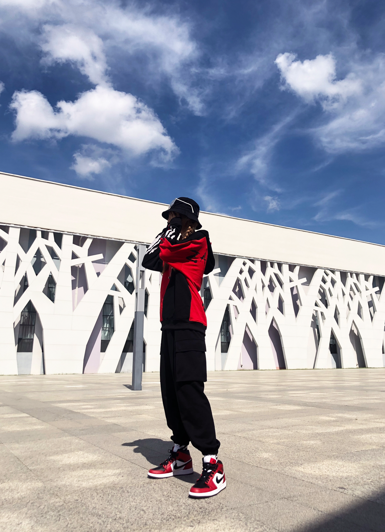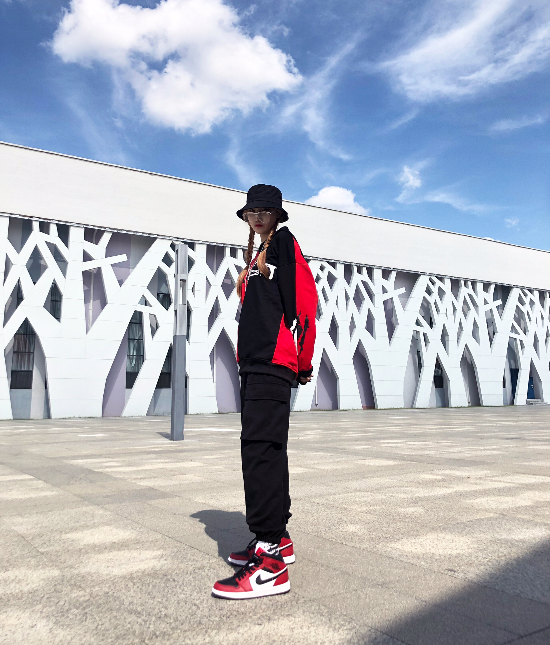 你做最乖的小孩|我做最酷的仔 ⚫️🔴 整体穿搭: 帽子:黑色渔夫帽 衣服:zachariah 残暴狼痕卫衣 裤子:zachariah 立体大口袋运动裤 鞋子:AJ1芝加哥黑红脚趾 详情:今天依旧甜酷穿搭风格。🔴黑红配色个人觉得真是随便搭配都好看的,中帮真的是显瘦利器,春夏或者早秋搭配短裤短裙效果更好!黑红脚趾更适合秋冬一些,白红更适合夏天一些。🔴衣服还是选的跟今天的黑红色系呼应的一件国潮小卫...