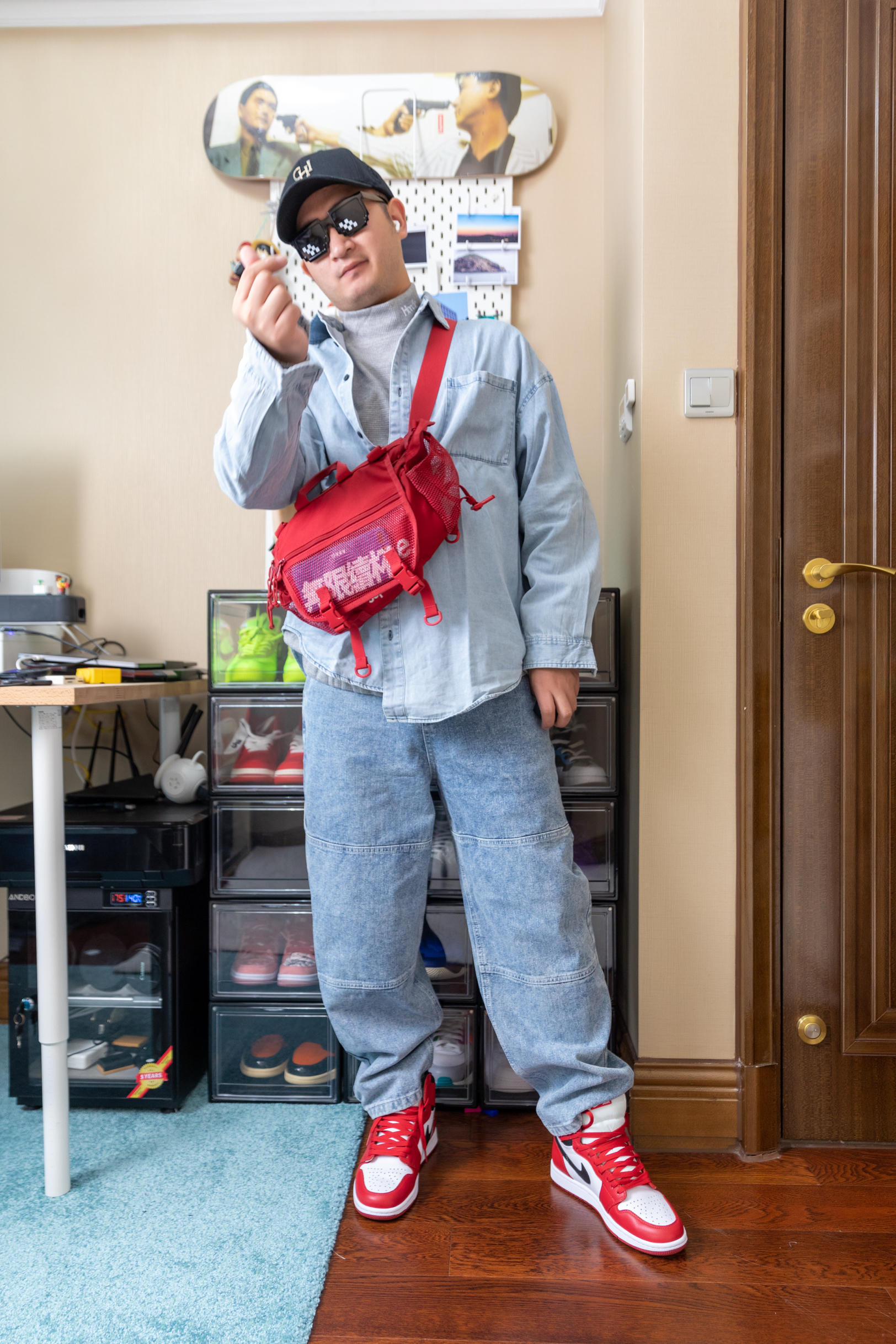 外套🧥棉质轻薄款牛仔衬衫 内搭👕华夫饼🧇格子小高领假两件卫衣 裤子👖三层拼接宽松牛仔裤 鞋子👟aj1芝加哥经典配色 包包📦supreme 穿搭心得: 楼主身高178cm,体重80kg 选择的内搭是普通版型的卫衣,小高领的设计在秋天乃至初冬都可以很好的御寒,华夫饼格子很精致,面料超柔软!外套的化是很宽松版型的牛仔外套,因为宽松可以遮住自己的微微隆起的肚子!而且绵柔的牛仔和舒适! 裤子的化尽量选择宽松...