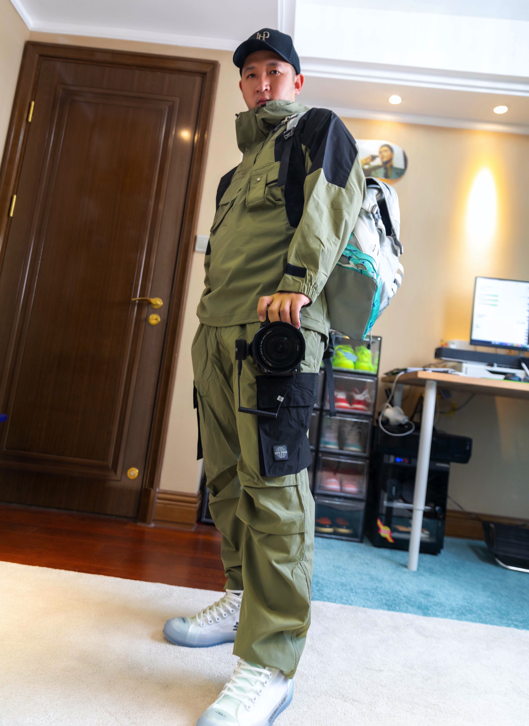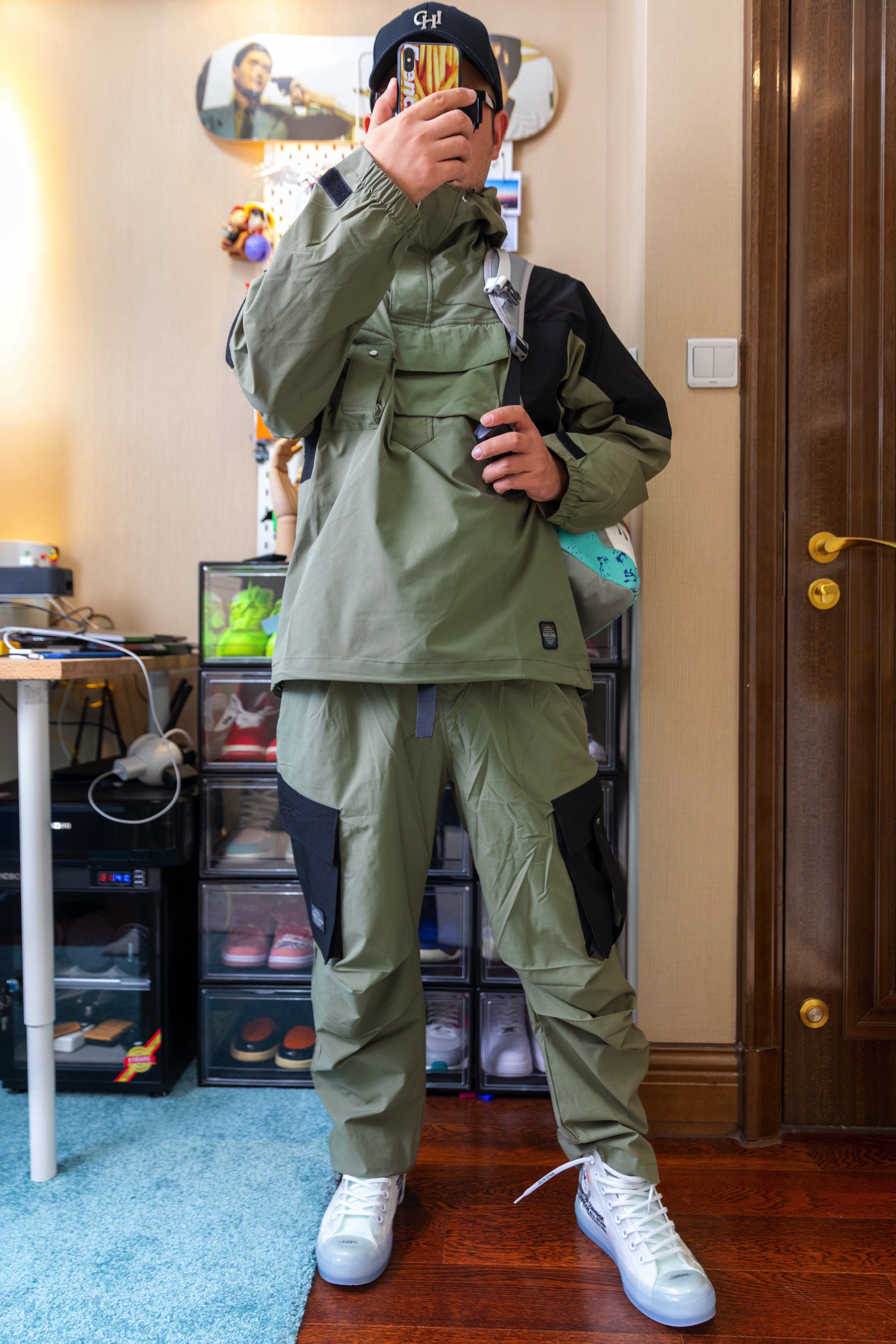 深夜一波穿搭,秋季出游风。梭织面料哪都能钻 军绿色吃鸡熬到最后不被毒死拿下没问题。 衣🧥:TAJIGRADIENT军绿色梭织卫衣 裤子👖:TAJIGRADIENT军绿口袋拼接梭织工装裤 鞋子👟yeezy 700 穿搭心得:军绿色耐脏,梭织耐操。轻便保暖!