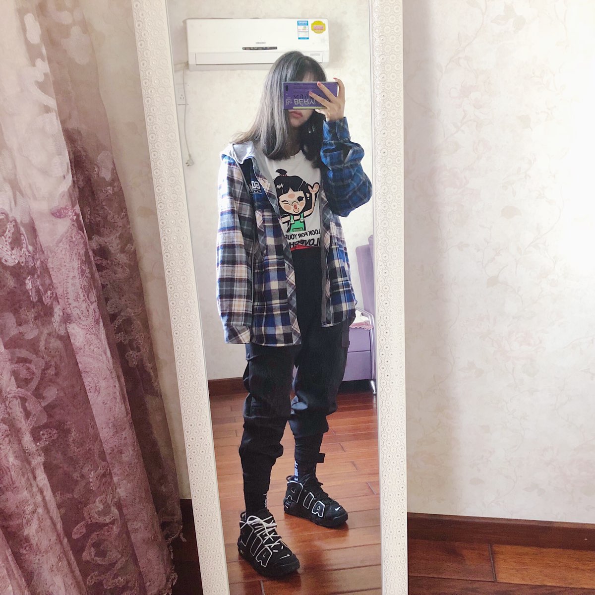 图1⃣️:李宁人民日报➕普通小短裤➕AJ4白镭射 整体浅色涂鸦的风格,运动卫衣比较配马尾~ 图2⃣️:VENGETICE➕Eruption Lab➕AJ4红外线 整体白粉色系,少女的颜色hhh,敲喜欢~ 图3⃣️:ILOVECHOC➕1807➕皮蓬大AIR 整体冷色调,蓝色格子搭配黑色,有一丢丢酷酷的感觉~ 图4⃣️:五分袖卫衣(忘了啥牌子)➕阿迪达斯➕AJ3街球赛 整体黑色风格,加上一丢丢...