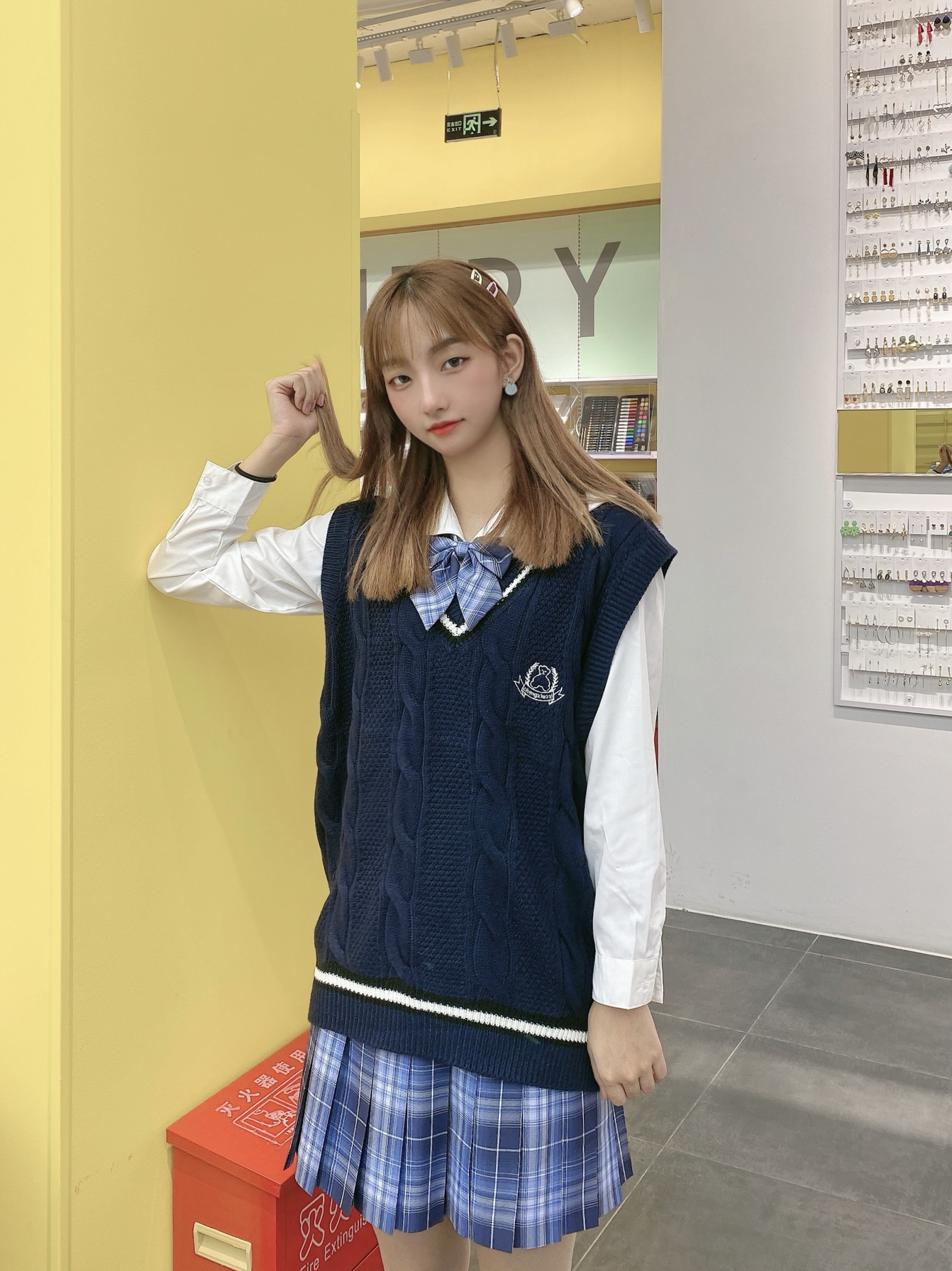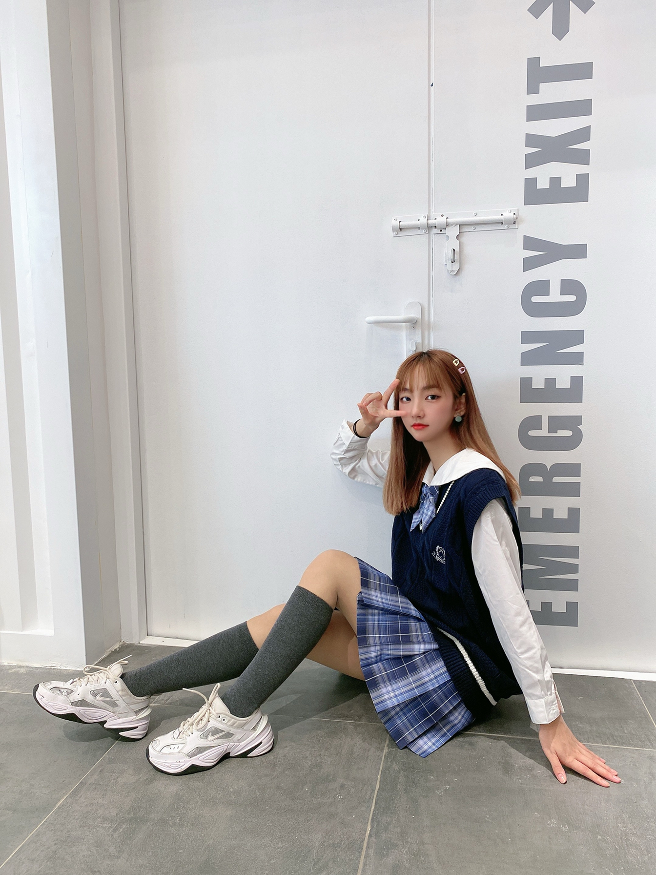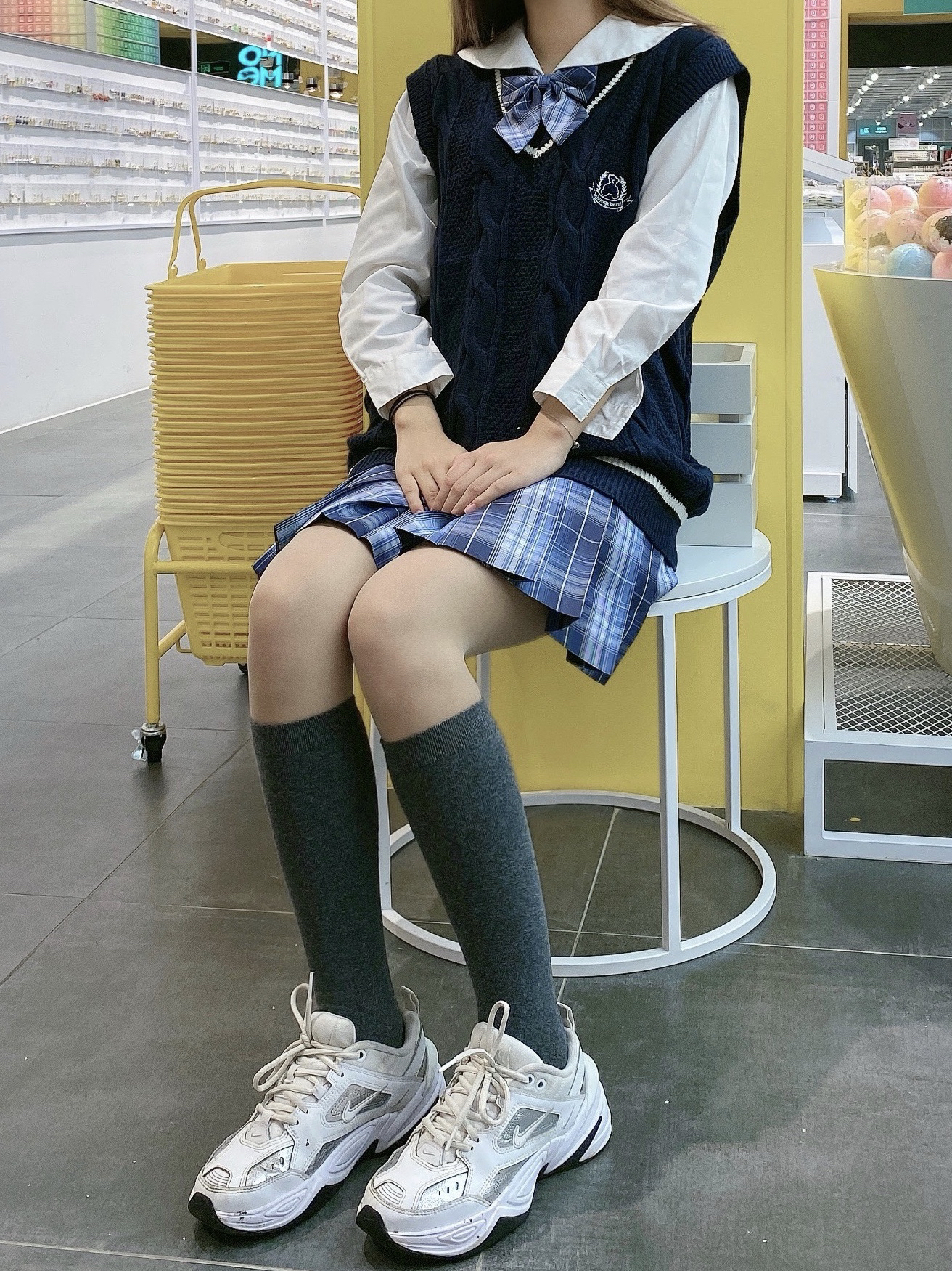 👕 背心 :BLACK自制 这个马甲背心我真的爱了,太好看啦,而且也很百搭。 👗:晴天社jk 拿到之后的实物颜色比照片更好看,偏亮一点的蓝格,超级显白啊 👟:Nike m2k 超级百搭的一款鞋,我的最爱前三。
