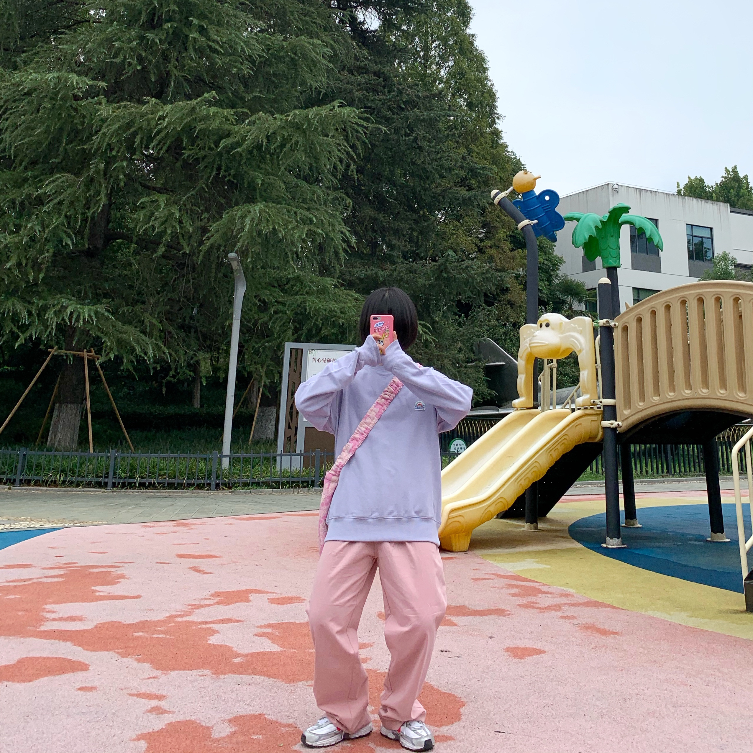 外套:小树家 卫衣:antighost 裤子:rainy design 树莓色搭浅紫色搭淡粉色,粉粉嫩嫩年轻10岁!虽然已经毕业了但也要可可爱爱,全部同色系也可以很秋天🥳