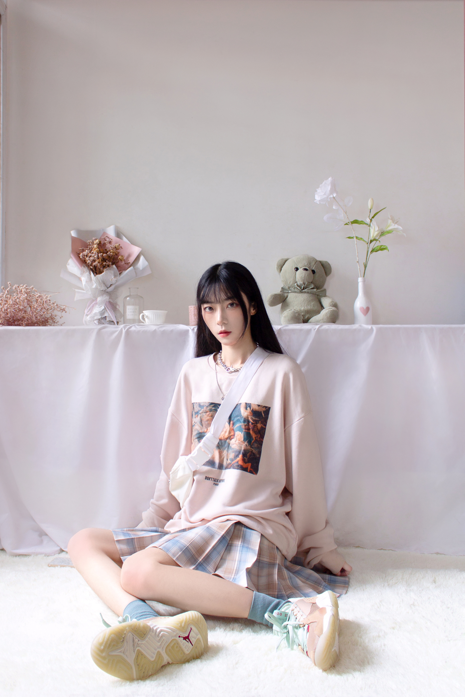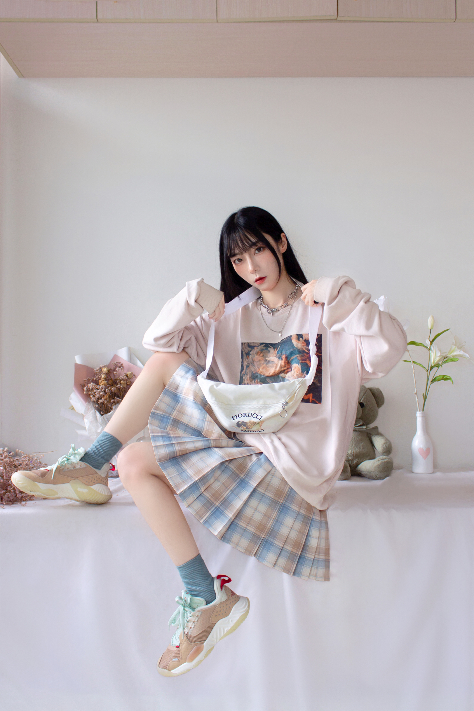 ●格裙:玻璃晴朗【晴天社】 ●鞋子:AJ Delta Vachetta Tan 棕绿【得物】 ●卫衣:天使印花卫衣【🍑宝】 ●包包:Adidas x FIORUCCI小天使腰包 ●袜子:湖蓝色【Mrs咩夫人】