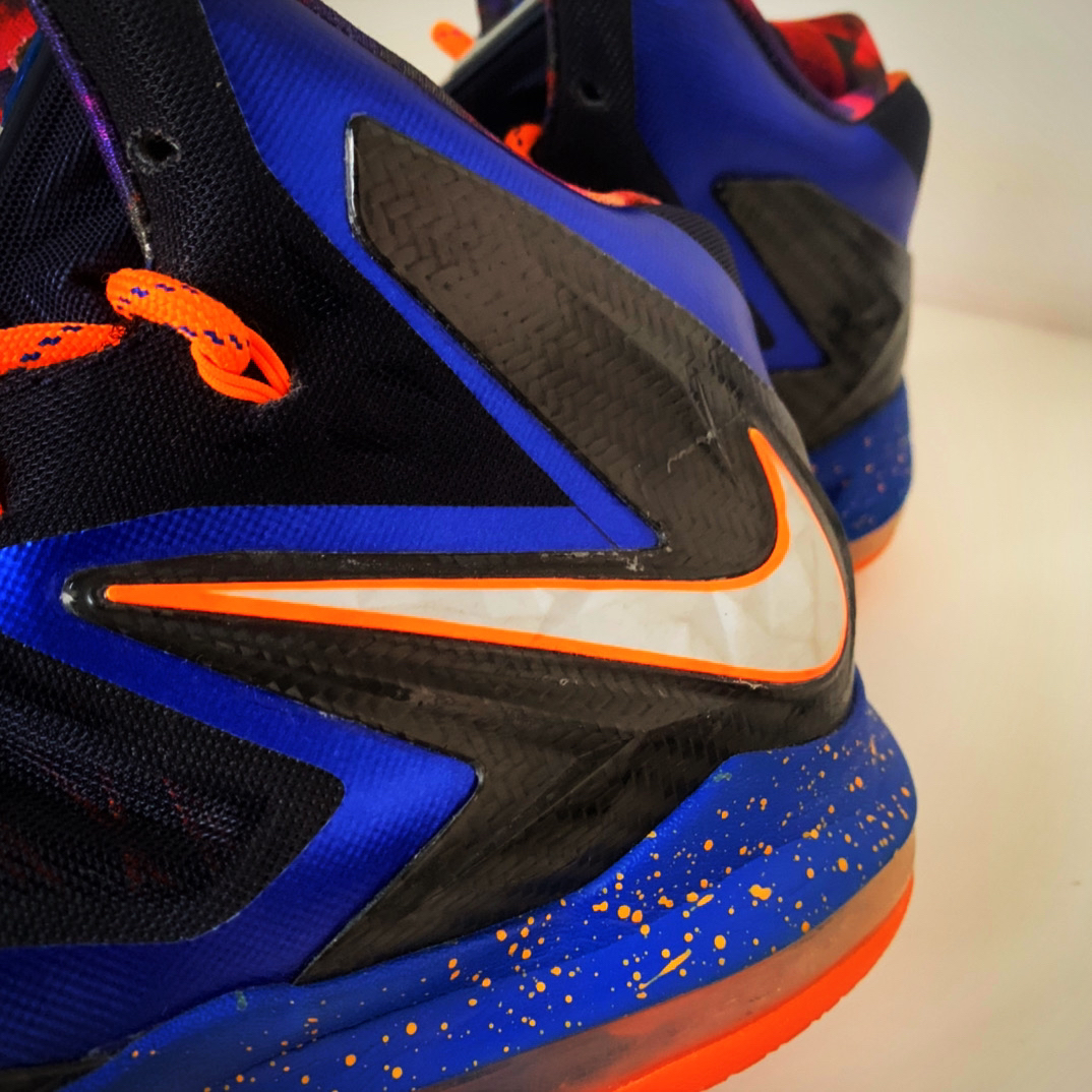 球鞋背景🟧🟦🟧🟦 2012-13赛季,那一年,热火打出了全联盟历史第二长27连胜,那一年的热火是我心中最强的热火。外线詹姆斯跟韦德的压迫式防守,让热火的防守反击快如旋风,同时为詹姆斯配备了一系列的射手,比如雷阿伦,巴蒂尔,麦克米勒,刘易斯。比赛中,往往是三节打卡下班或者是逼迫对方失误防守反击,以詹姆斯的空接暴扣结束。那一年的詹姆斯打破了心魔,有了总冠军的加成,让他变得更加沉稳大气。 球鞋配置🟧🟦...