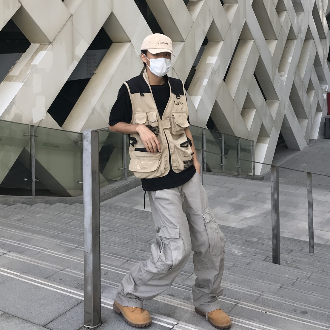 🧢:ourSalutelab灯芯绒棒球帽 👕:CAVEMPTC.E 鬼手打电短袖 👔:AsianPlus网眼工装马甲 👖:WASSUP大口袋工装裤 👟:添柏岚大黄靴 帽子:整体灯芯绒的面料,很有个性化,以往的帽子都不会采用灯芯绒,这款就大胆的尝试了这种做法,它一共有几个色,我入手了这个卡其色的,很百搭呢~前面就是简单的黑色品牌LOGO刺绣,既简约又好看! 内搭:相信不少对日本本土潮牌有所了解的...