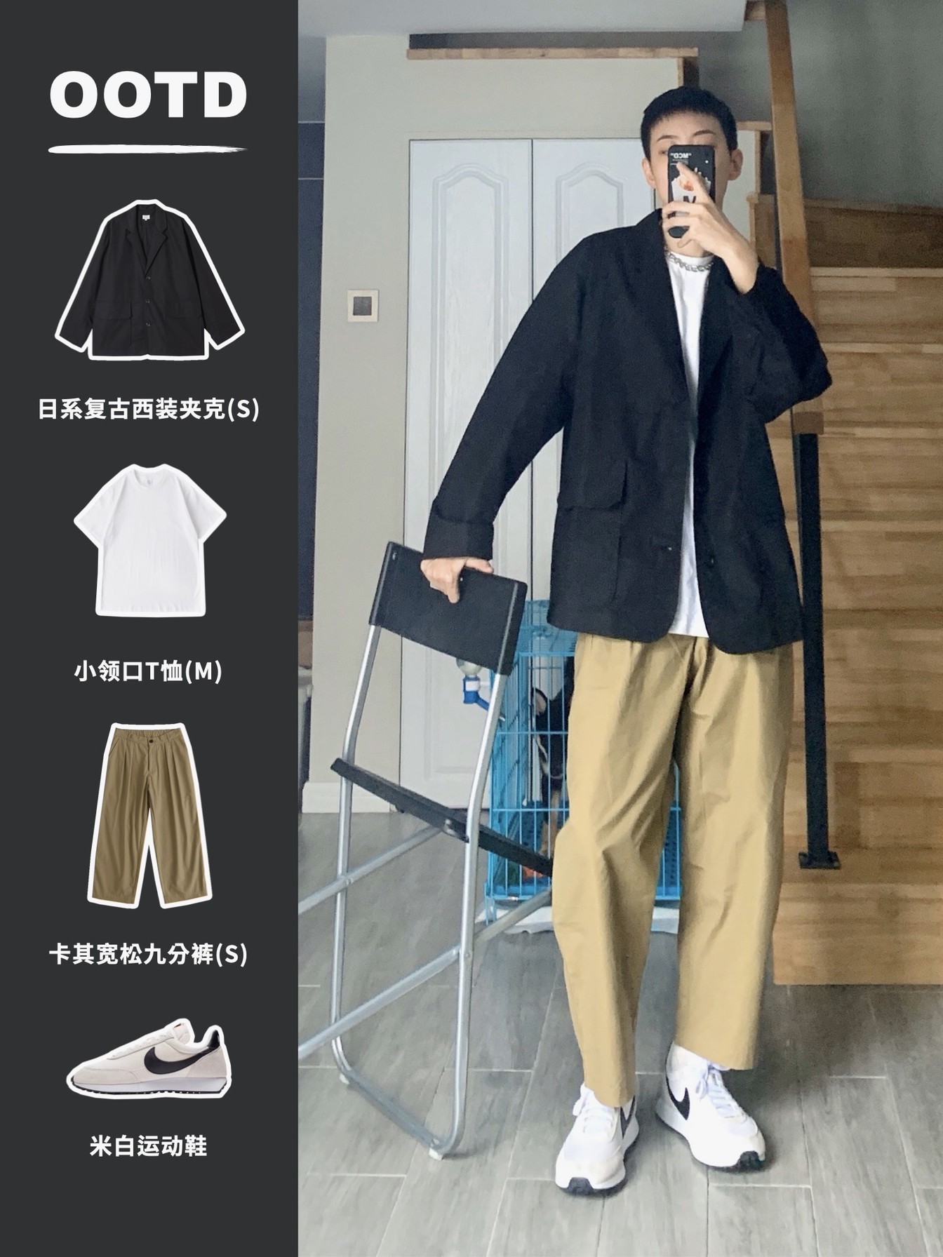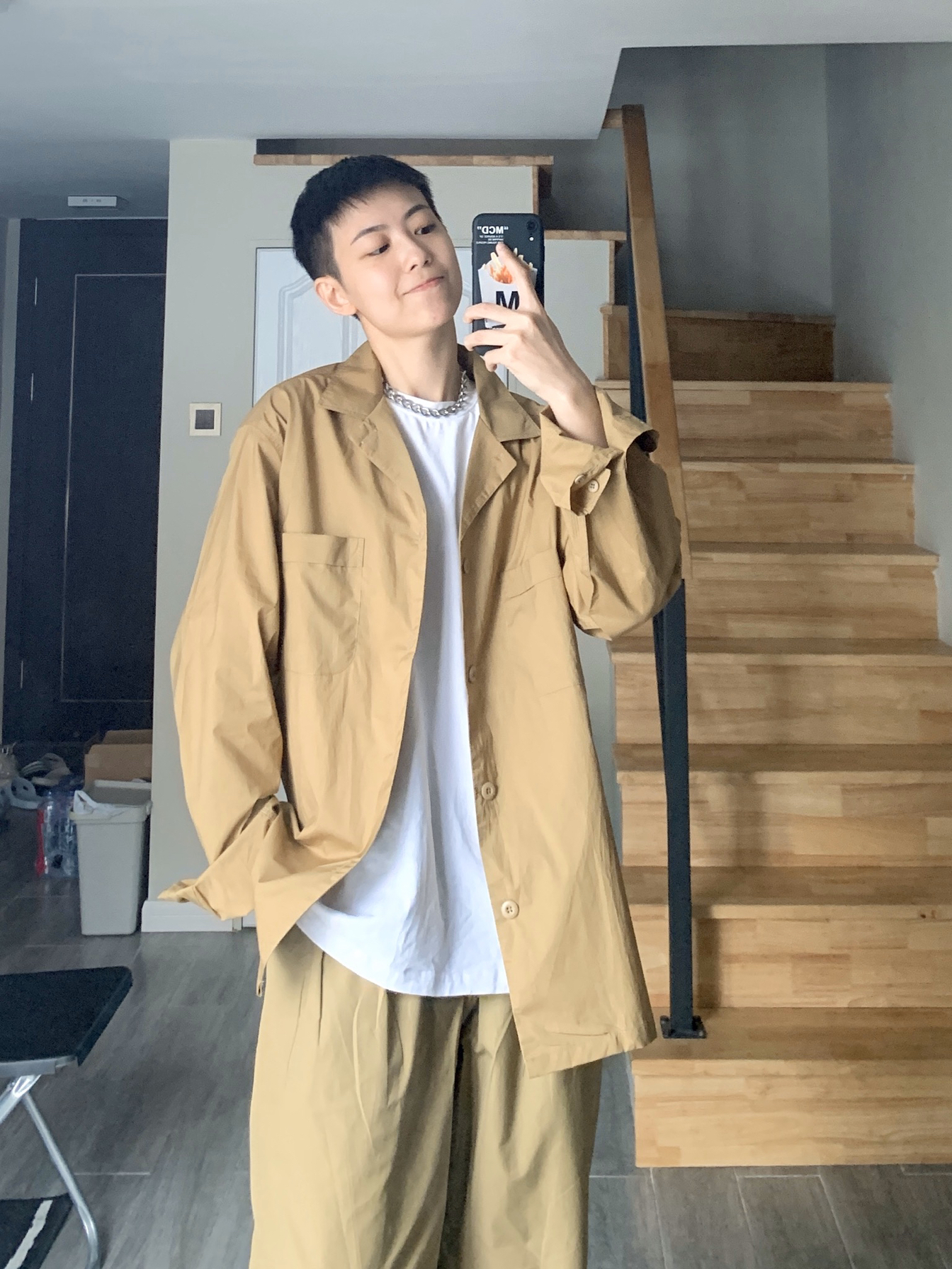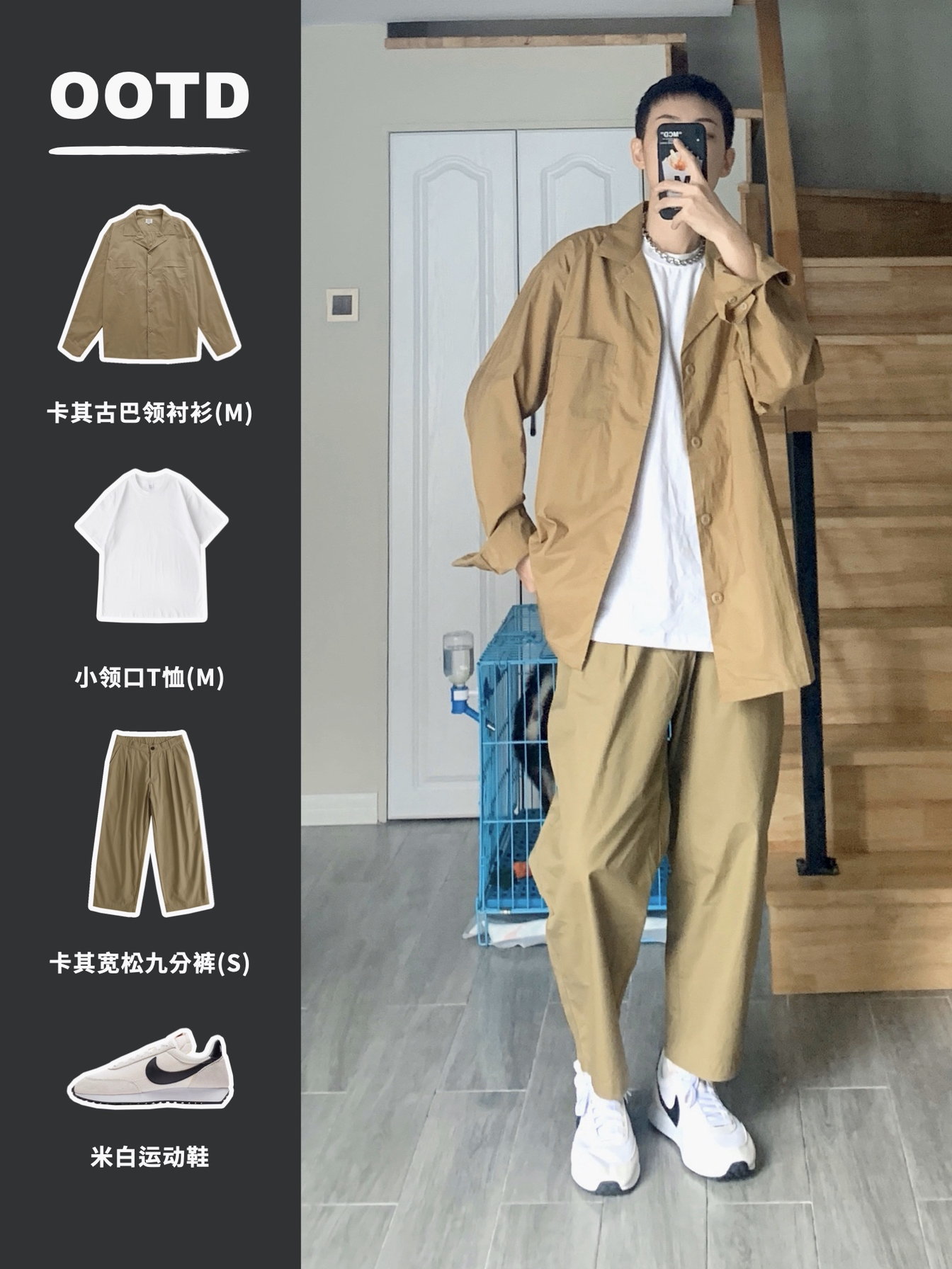 hi 这里小贾,身高168体重52。 〰️ 今天分享干净清爽的日系穿搭,大地色系是最适合秋天的颜色,廓形衬衫或是薄西外都是这个季节值得入的单品,上身就是暖暖的盐系男孩啦🧏🏽♂️ 〰️ 🏷️ 上身单品 衣裤:LR MADE 项链:Fun爷原创 鞋子:Nike TAILWIND 79 〰️ 矮个子男生穿搭|日系盐系穿搭|男生秋季穿搭|早秋穿搭|165-170每日穿搭分享|无性别穿搭
